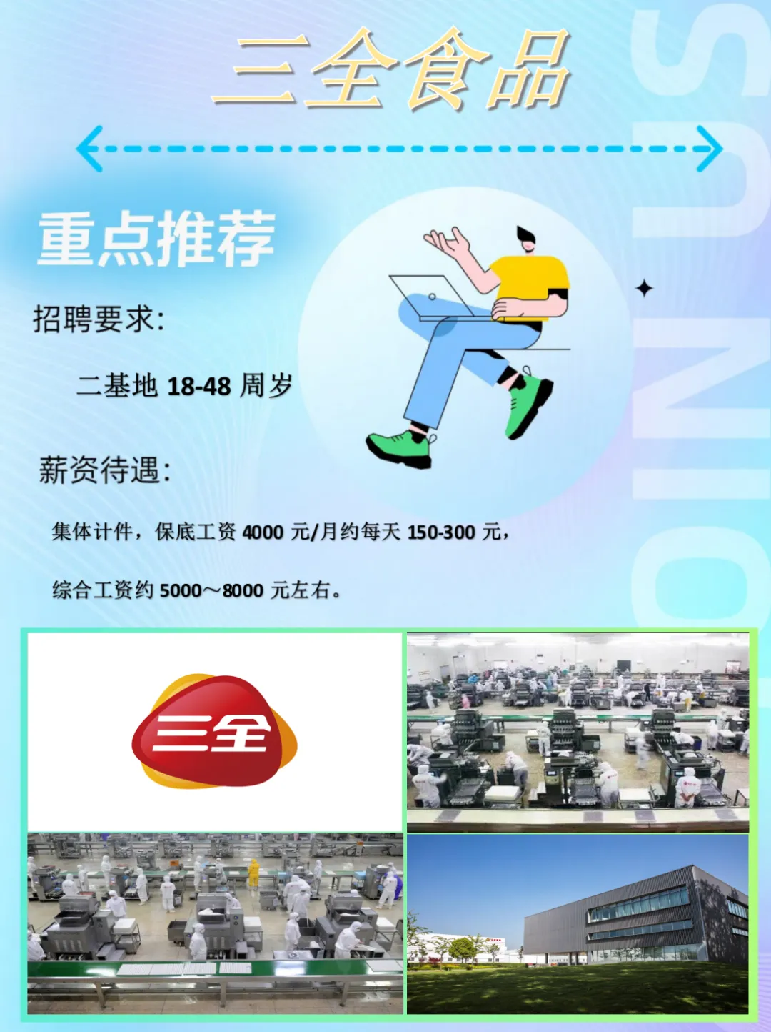 岗位优点:三餐免费,住宿免费,
