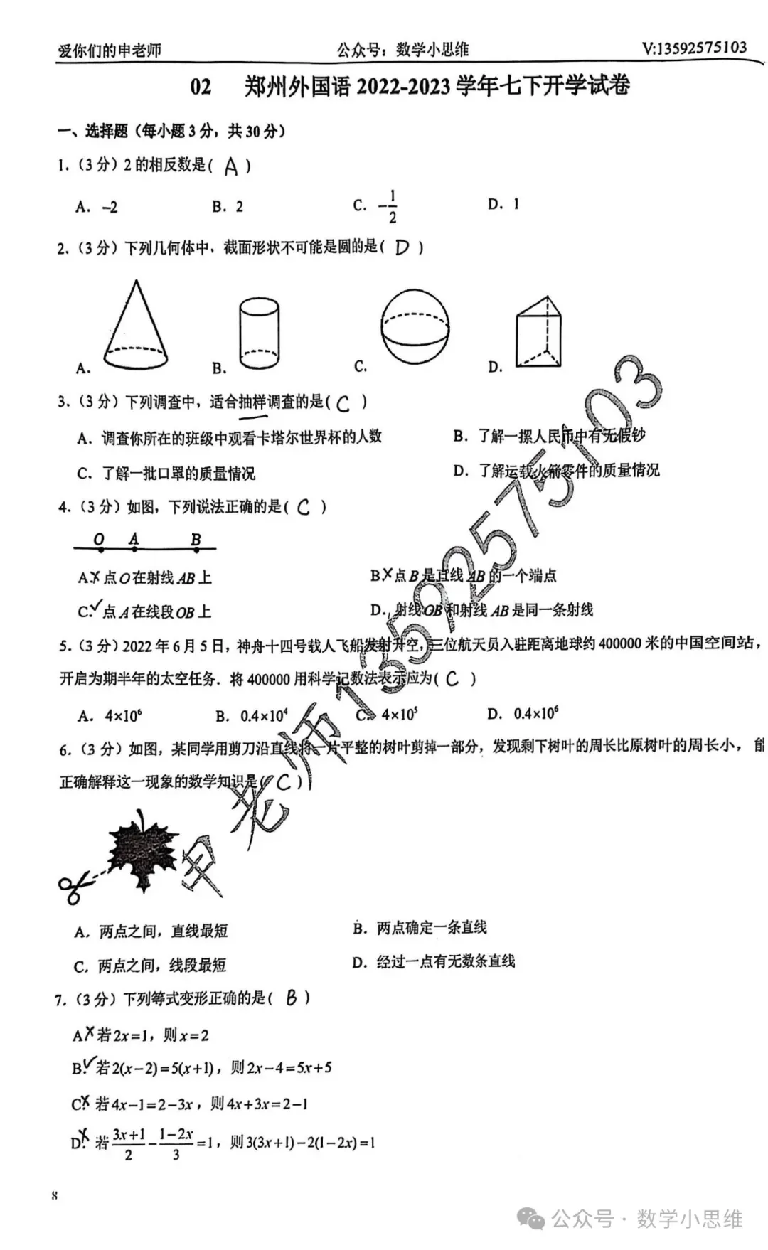 7郑州外国语七下开学试卷下载及讲解(2025版02套)