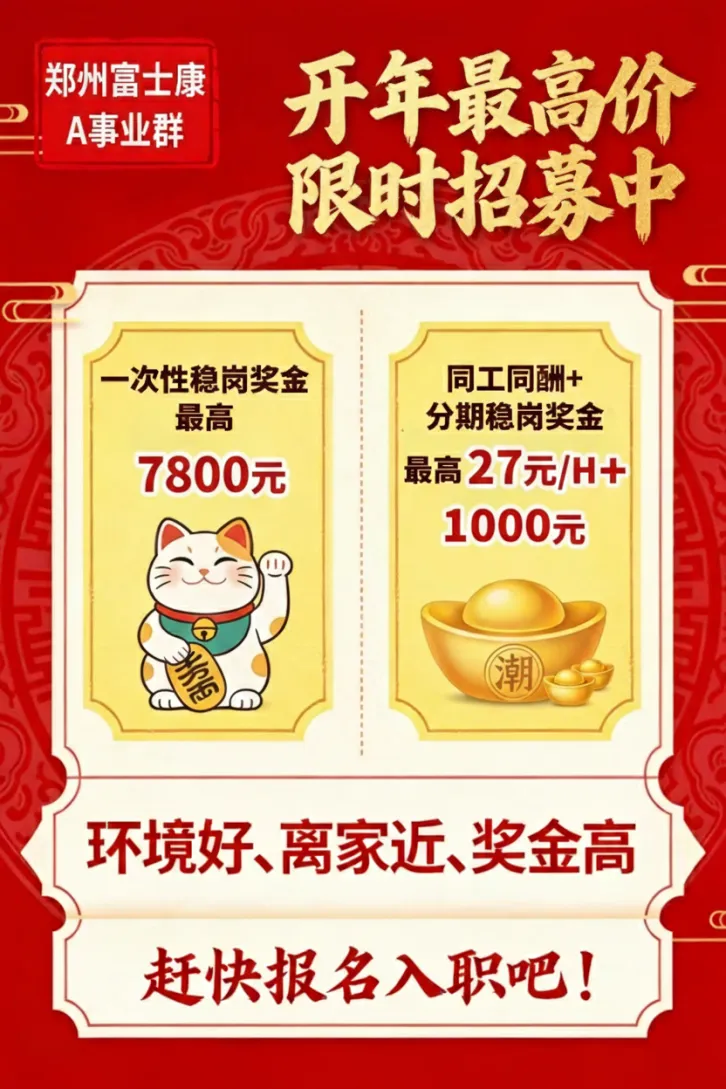 郑州富士康本周日&下周招聘继续,开年高价火爆进行中👍