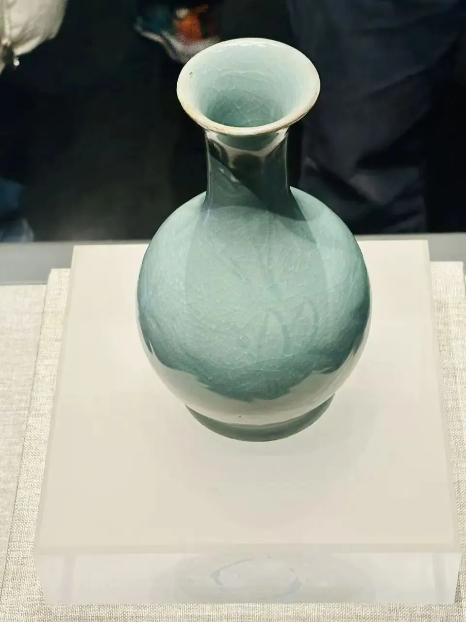 ✅ 汝窑天蓝釉刻花鹅颈瓶:宋代汝窑珍品,上午 10 点斜射光下能看到 “雨过天青” 的绝美釉色。