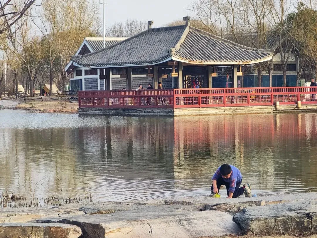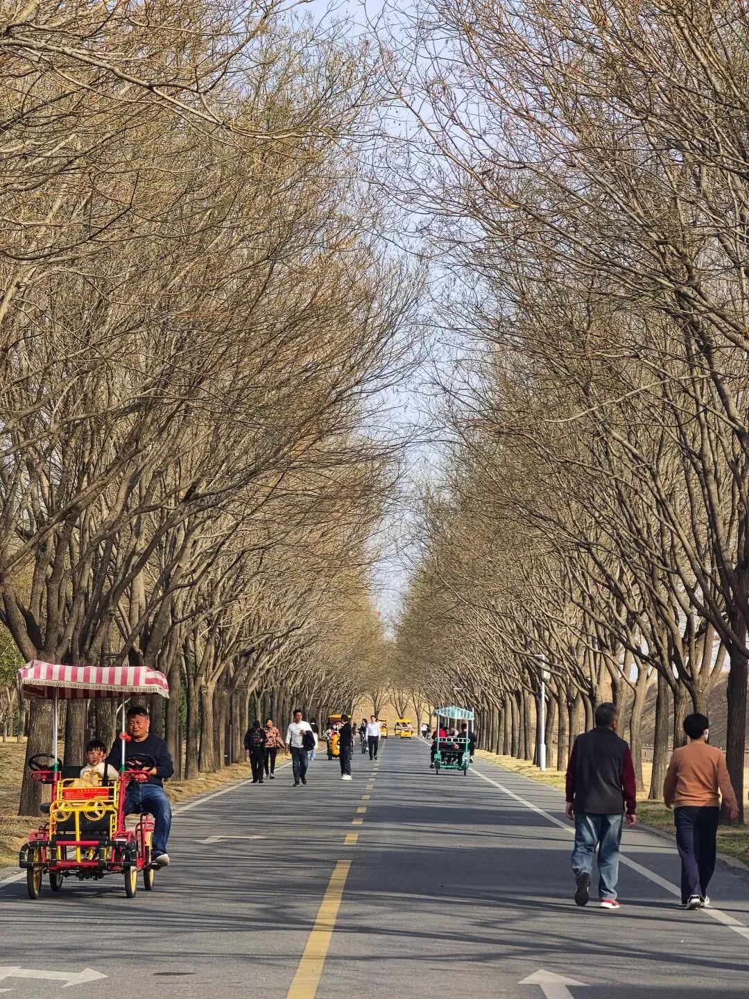 根据导航一路前行,发现它跟苑陵故城遗址公园是一个地方,公园的名字也改成了苑城文化公园。对此,现场有市民认为,这个名字中添上了“文化”,却丧失了在历史文化长河中具有坐标意义的“苑陵”二字。秦始皇十七年(公元前230年)于此置苑陵县,苑陵故城是中国历史上秦汉时期首批实行县制的古城代表,2013年被国务院核定公布为全国第七批重点文物保护单位。尽管新名给人一种郑州新造“苑城”古城的错觉,但丝毫不影响人们游玩的兴致。瞧!小小儿郎逛苑陵。园区以古遗址保护为前提、以展示秦汉农耕文明为主线,对部分古遗址发掘,进行水系和微地形塑造。种植乔木、灌木、地被约470个品种,营造花林草地、花卉长廊、花耕农田等。故城的四季因此拥有了鲜明的个性——秋之绚烂、冬之苍翠、春之明媚、夏之斑斓。