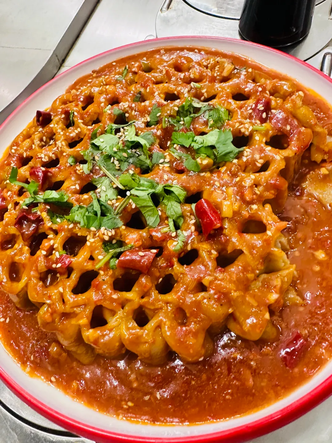 在山西,面食是信仰。 找一家本地馆子,点一笼莜面栲栳栳。 一个个像蜂窝一样的面卷,蘸着西红柿鸡蛋卤或者羊肉汤吃。莜面的香气很特殊,有一种粗粝的、阳光晒透了的粮食味。 💰 人均:30-40元。