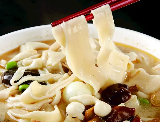 面是现拉的,师傅在案板前揉面、摔面,面条扯得又宽又薄,下锅煮两分钟就捞出来,铺在碗底。浇上两勺汤,盖几片炖得软烂的羊肉,再撒一把鹌鹑蛋、海带丝、千张丝,最后点一撮香菜。