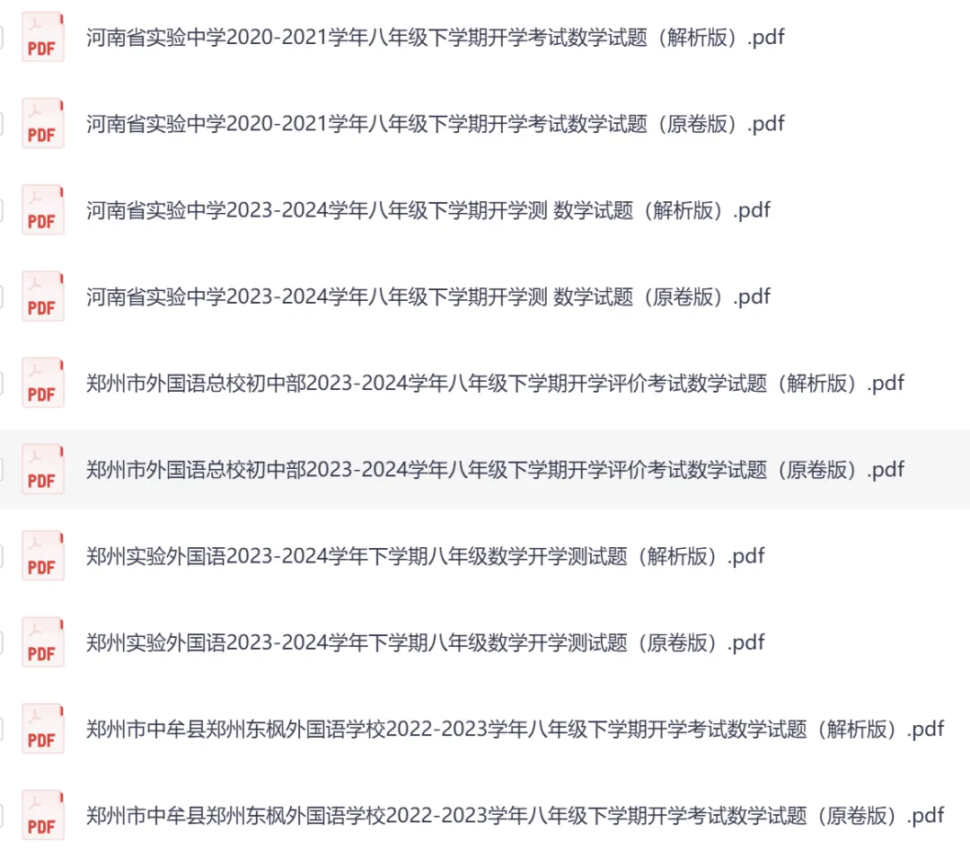 | 九下开学考 | 河南省实验中学2024-2025九下开学考试卷及答案(7科含听力) 河南省实验中学2023-2024九下开学考试卷及答案(7科含听力) 河南省实验中学2022-2023九下开学考试卷及答案(7科含听力) 河南省实验中学2021-2022九下开学考试卷及答案(7科含听力) 河南省实验中学2020-2021九下开学考试卷及答案(7科) |