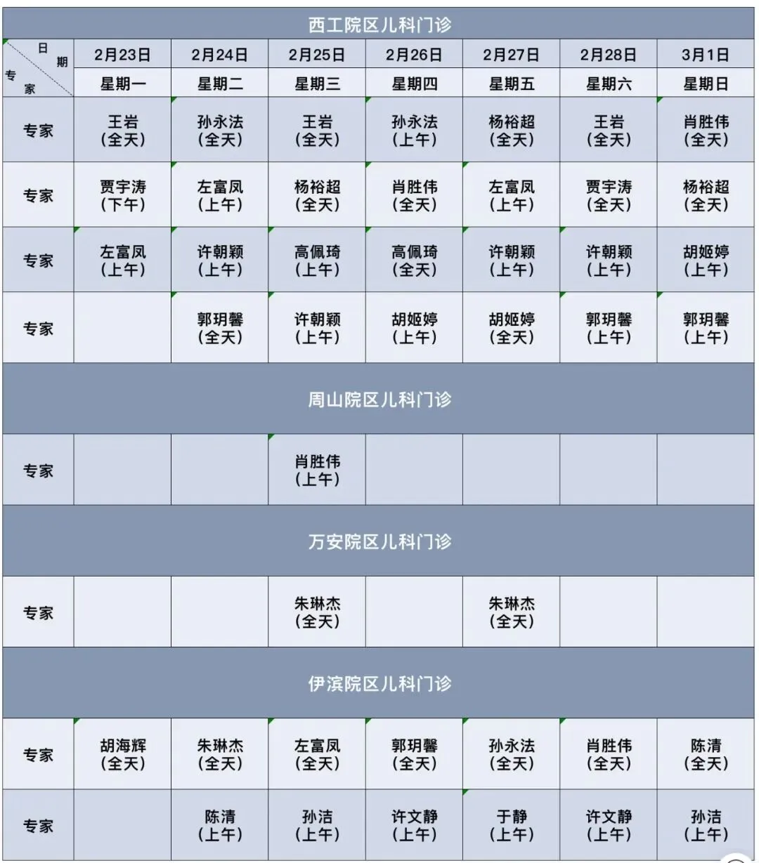 郑州大学附属洛阳市中心医院儿科/儿保门诊2026年2月23日—2026年3月1日专家坐诊时间