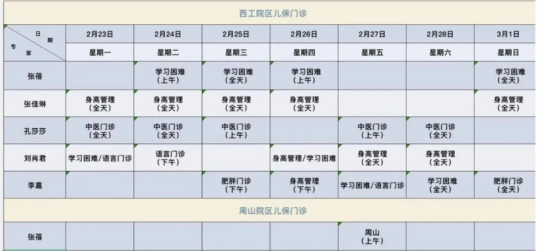 排班 儿保门诊地址:南门诊楼1楼(医院门诊楼对面,中州中路南侧)