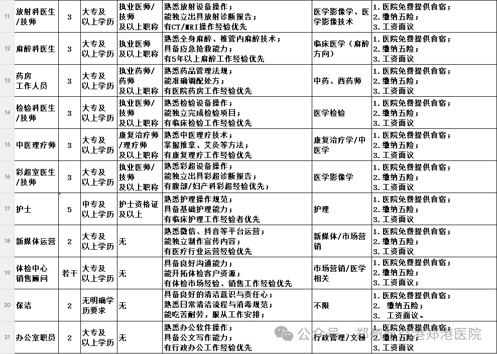 - 统一要求:大专以上 + 执业医师证 + 5 年经验优先