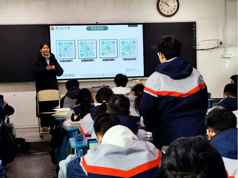2026年1月20日,南方医郑州寒招队伍走进郑州市第二外国语学校开展了寒假招生宣传活动。走进教室,队员们先发放纪念品和宣传页,接着播放自制的学校内景视频,宣讲人以此展开详细介绍。提问环节,队员们用额外奖品鼓励大家提问,学子们踊跃举手,现场气氛热烈而温馨。