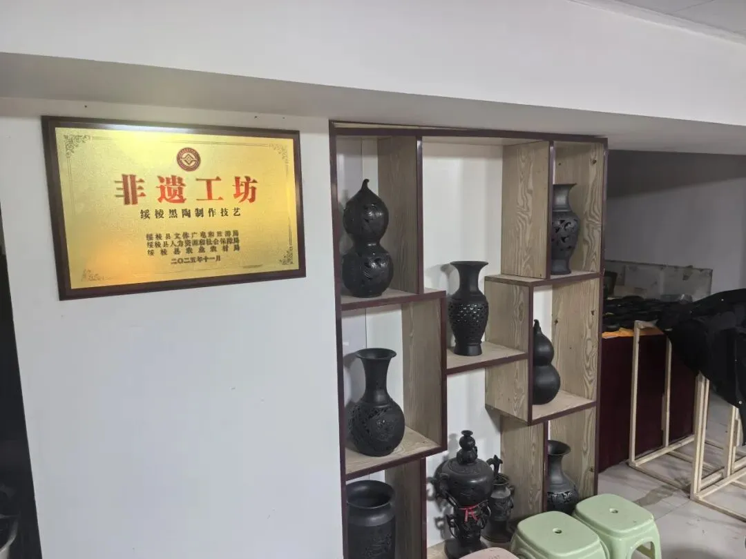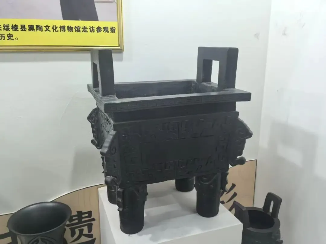 在绥棱县非遗展示馆,一件件黑陶作品静默陈列,却仿佛在诉说着千年的故事。从日用的罐、盆、壶,到装饰用的瓶、尊、鼎,再到现代创新的茶具、香器、艺术品,黑陶的形式在变,但其核心的文化基因却一脉相承。每一道划痕,每一处凹凸,都是匠人与材料、与传统、与自我对话的痕迹。