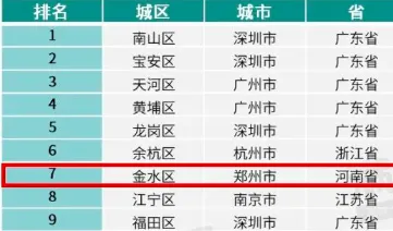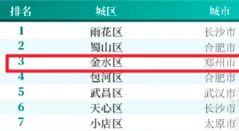 先来看看,金水区在对外的一些排名中的位次(这里的金水区含大部分郑东新区域)。