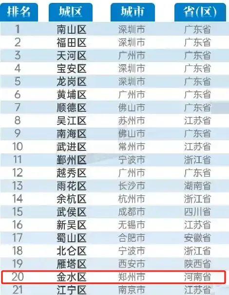 2025年赛迪中部百强区第3名,金水区挺进中部地区高质量发展第一方阵,成为中部地区城区经济发展标杆(信息来源于金水区人民政府官网)。