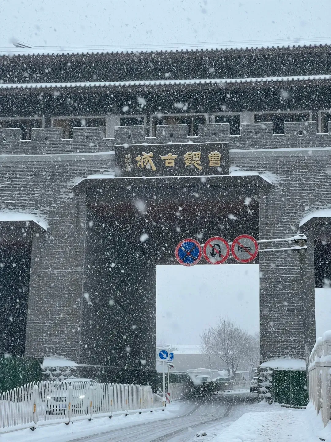 曹魏古城19:00后南城门灯一亮,配上人工降雪,那魔幻现实主义的味儿绝了。