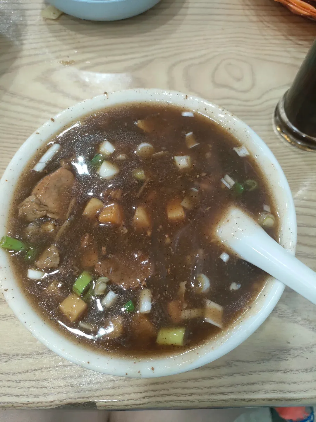 马武胡辣汤第一口可能冲得你怀疑人生,咸辣胡椒味重。