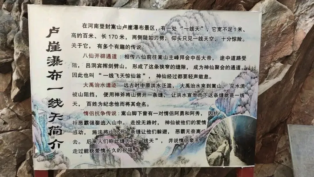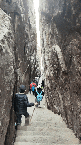参见少室山的少林派之后,自然要拜访太室山的嵩山派,车可以停在这个免费停车场,因为没有缆车🚡,早上8点到了开始爬,预计8个小时完成环线。 从嵩阳书院这边的检票口进,爬山票价🎫50,1.4米以下免费,嵩阳书院30可以不进。 看看全景地图🗺️,昨天去的是左侧少林景区,今天计划是上午嵩阳景区上登顶,下午从中岳景区下山,走卢崖瀑布线。 可以坐个观光车🚌,15一人,省2km旅程,直达太室山广场爬山起点~ 第二站来到逍遥亭,这里有红牛墙~来一根烤肠🍖补充体力~ 第三站三佛殿~这条路沿途补给点充足,道教景观多些👍🏼~ 第四站,中岳行宫,以前的帝王到此歇脚,我们继续冲✊🏼~ 天梯过后还有几道弯,转过最后一道弯来到第五站:三皇口,这里到峻极峰只有1km了🤩 嵩山派左掌门之后日渐凋零,地标石头拍照📸都不用排队,当然也是因为人少😂~ 这里的峻极驿站有标间和帐篷⛺可以住宿,标间800,帐篷400 走了2km来到岔路口,最后一次选择原路返回的机会,继续卢崖瀑布⬅️~ 嵩山有72峰,下山会翻好几个山头,这是起云峰⛰️~ 再走2km来到气象站~这里是个补给点,这条路补给点很少~ 又走了1km来到青童峰~太惨了,还在期盼施主捐款返修庙宇,连隔壁少林的零头都没有😂~ 再1km左右来到著名的一线天~这条路这么久了终于到一个景点😁~