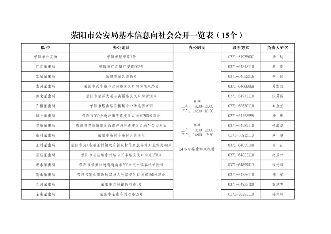 当前位置:首页>郑州>郑州荥阳市公安局基本信息向社会公开一览表(20260204)