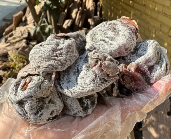 最值得一试的,是这里的柿饼。不是那种干硬的,是带着霜的流心甜。