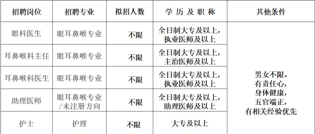 郑州卓美眼耳鼻喉医院是一所按照国家二级专科医院的标准设计、建设与运行的现代化专科医院,医院位于郑州市高新区梧桐街与石楠路交汇处。集医、教、研、预防保健及健康管理为一体的非营利性医院、也是郑州市医保、河南省医保及跨区医保异地结算定点医院。因医院工作需要,即时招聘医疗卫生等人员,具体招聘事宜如下:1.请符合条件的应聘者以“姓名+学历+专业+应聘岗位”为邮件主题;将报名要求的相关证件扫描件或高清图片发送至报名邮箱: