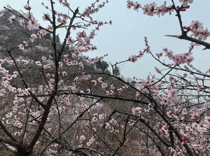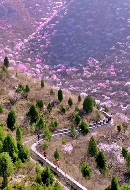 这里有一个名字颇为玄妙的山谷——绝情谷。别被名字欺骗了,这里一点都不绝情,反而充满了春天的温柔与浪漫。每到春天,漫山遍野的山桃花如潮水般绽放,粉嫩的花瓣连绵起伏,与翠绿山林相互映衬,恰似天边云霞洒落人间。