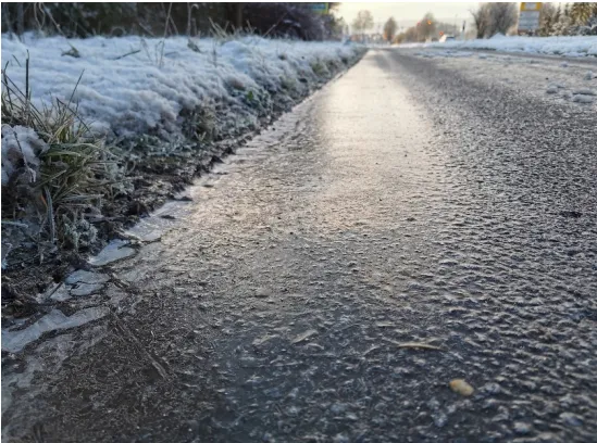 👉行车需警惕桥面、高架、隧道口、背阴弯道等易结冰路段,黑冰(暗冰)是紧贴路面的透明薄冰,与路面颜色相近难以察觉,多见于山区及上述路段,是冬季车辆失控的主要元凶之一,行经时务必匀速通过、不急打方向。