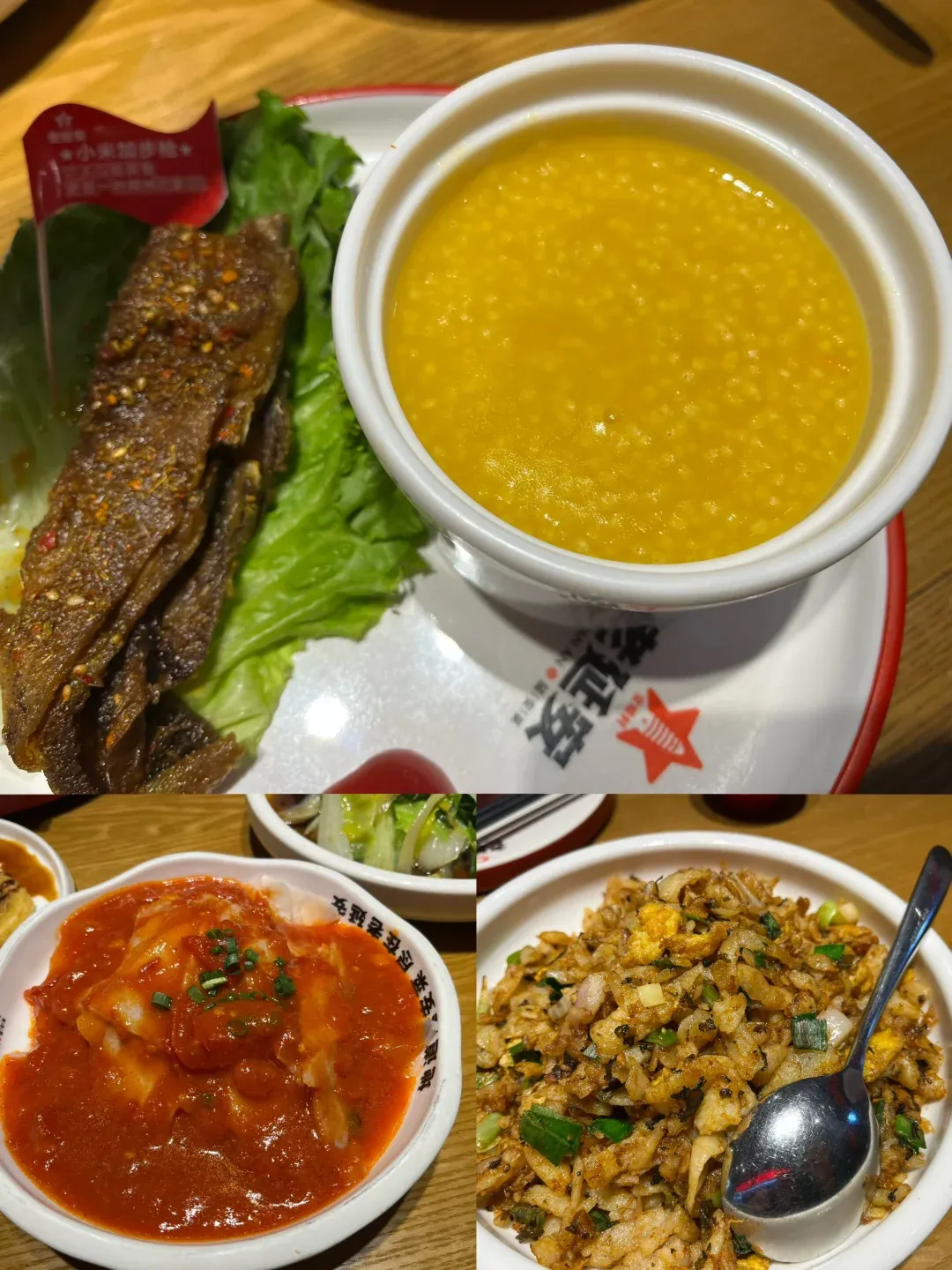 随便找个路边摊。洋芋(土豆)擦成丝,裹面蒸熟再炒,焦香扑鼻。配上一碗熬出米油的陕北小米粥,胃里暖烘烘的。