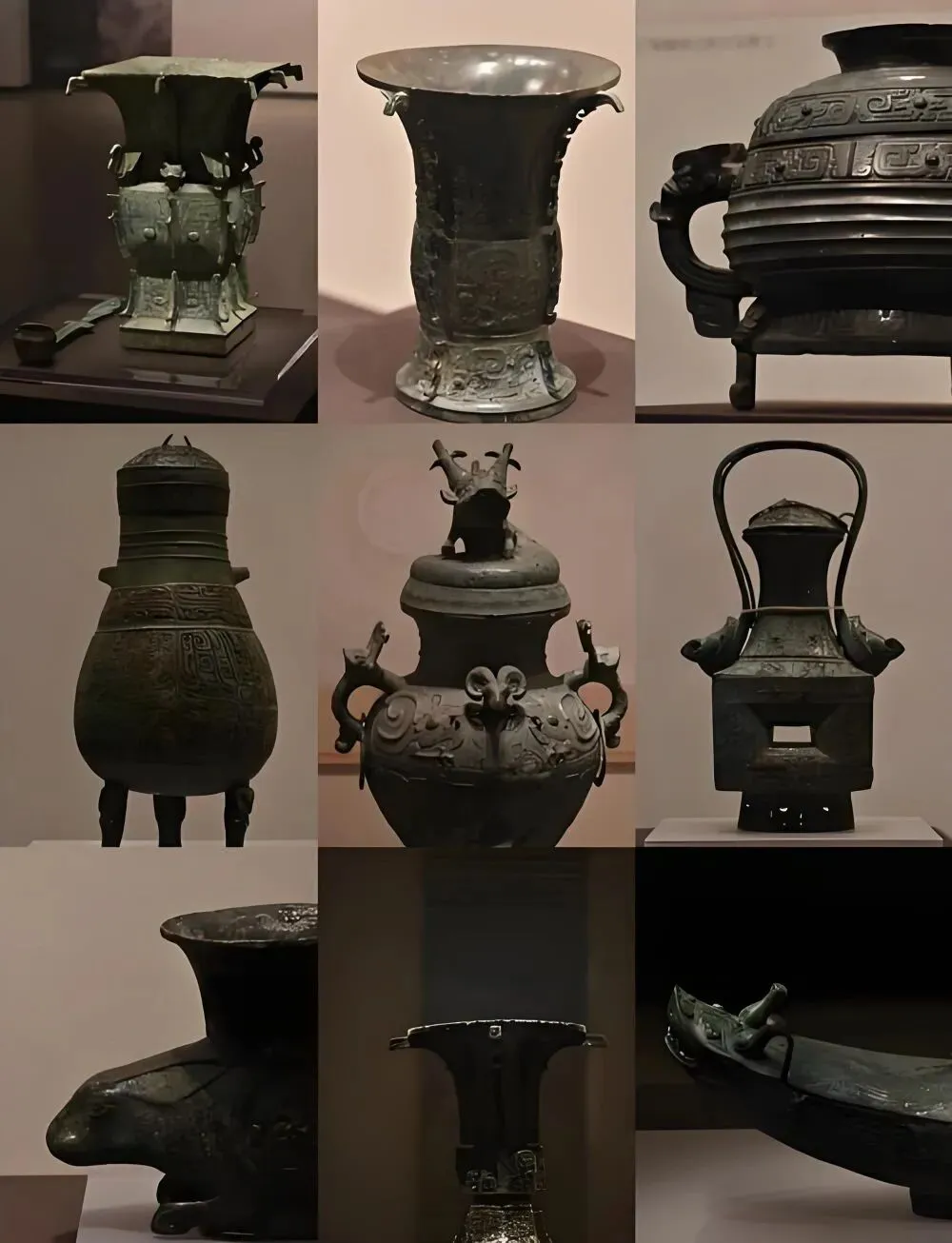 3. 青铜器组合:鼎、斝、爵等礼器按祭祀场景复原陈列