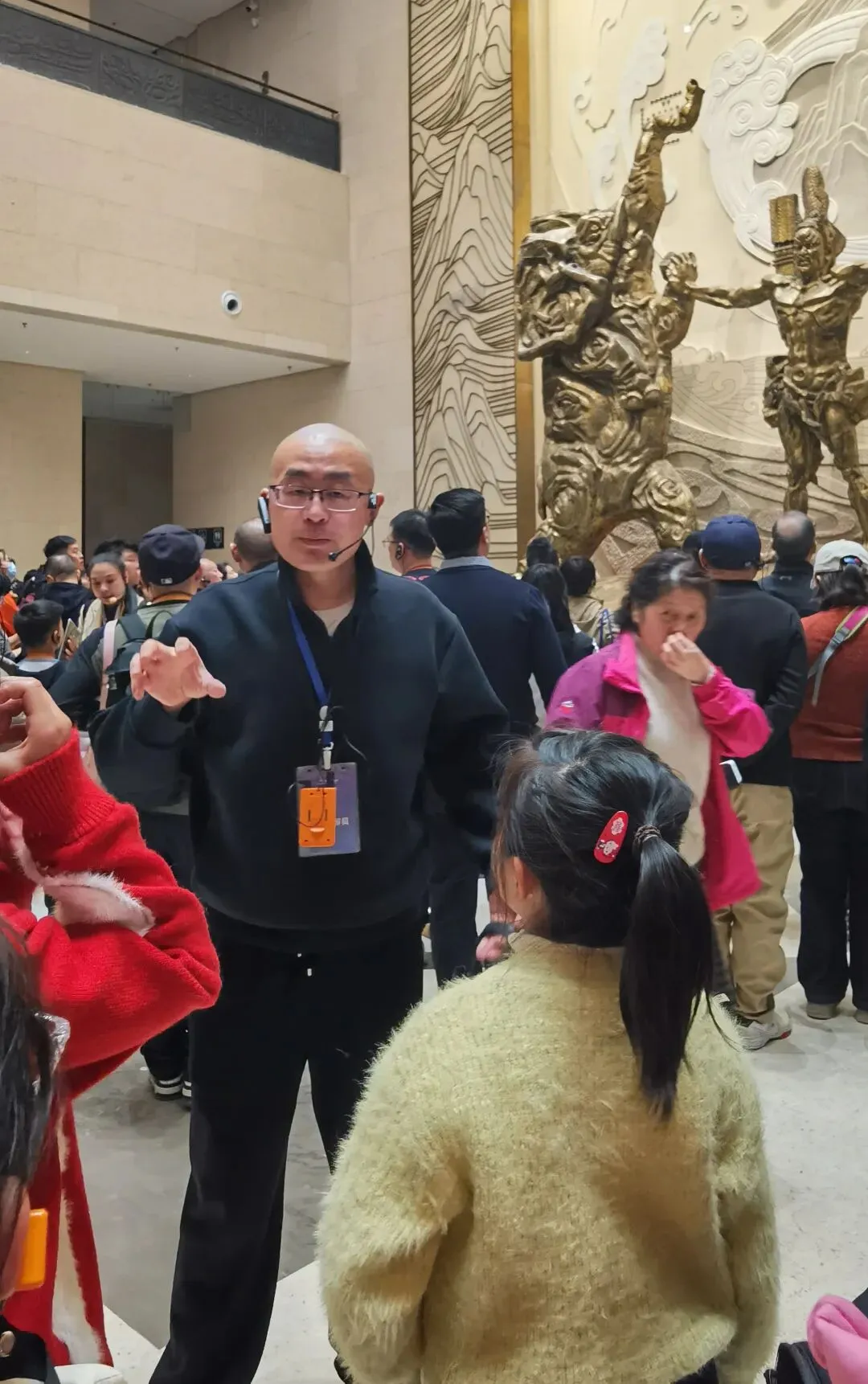 给我们讲解的杜老师,特别懂孩子,团队公约也格外有趣:称呼孩子们为“小老虎”,鼓励孩子们用“打游击战”的方式看展,和爸爸妈妈当一回“同学”。整整两个小时,整个临时研学团没有一个人掉队。
