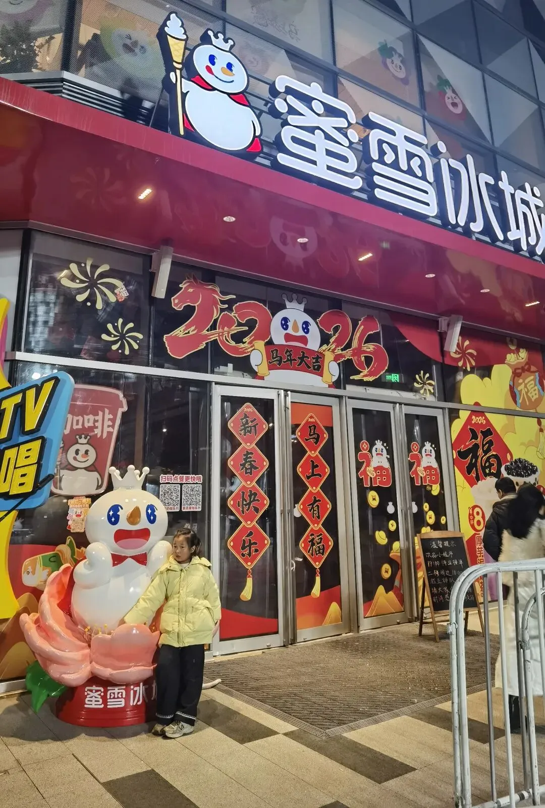 从博物馆回来吃完晚饭,我们又顺路去打卡了蜜雪冰城总部,来打卡的人依然超级多,热闹得很。可惜时间太晚,没有营业,只能在展厅逛了逛。