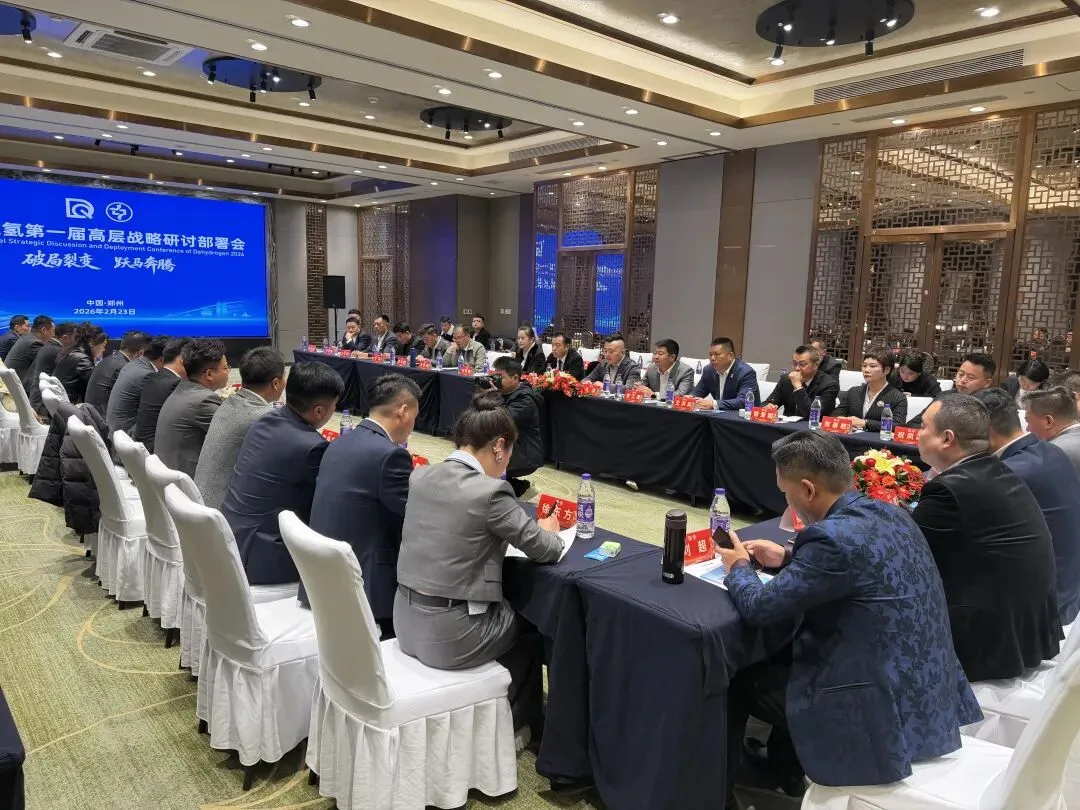 2026年2月23日,德氢第一届高层战略研讨会在郑州召开。本次研讨会聚焦德氢中长期发展战略规划与年度工作部署,与会中高层管理人员围绕核心议题展开深度研讨、凝聚共识。会议紧扣 “健康中国” 战略落地要求与社会健康需求升级趋势,重点研判健康产业科研创新方向与未来布局路径,明确以技术突破引领产业升级的发展主线。同时,会议强调各管理层需充分发挥战略引领与执行推动作用,强化责任担当、凝聚团队合力,将战略蓝图转化为具体行动方案,确保公司核心目标高效落地,以实干实效践行企业社会责任,助力健康产业高质量发展。德氢董事长邵光辉、德氢总顾问杨慧新、德氢高级顾问刘清山、超好科技集团董事长刘超、耀翔总裁张海旺,德氢运营中心徐东方、祝凤刚、李洋、张善慈及优秀总裁、副总裁出席本次研讨会。