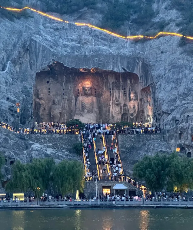拍照建议:龙门石窟别只盯着卢舍那大佛拍正面,人多得像下饺子。试着走到伊河对岸,或者等到傍晚亮灯时,那个光影打在佛像脸上,一半慈悲,一半神秘,怎么拍都有大片感。