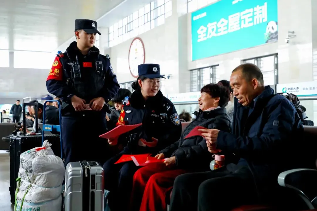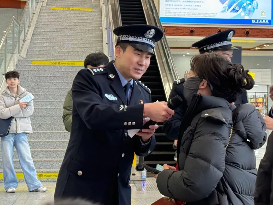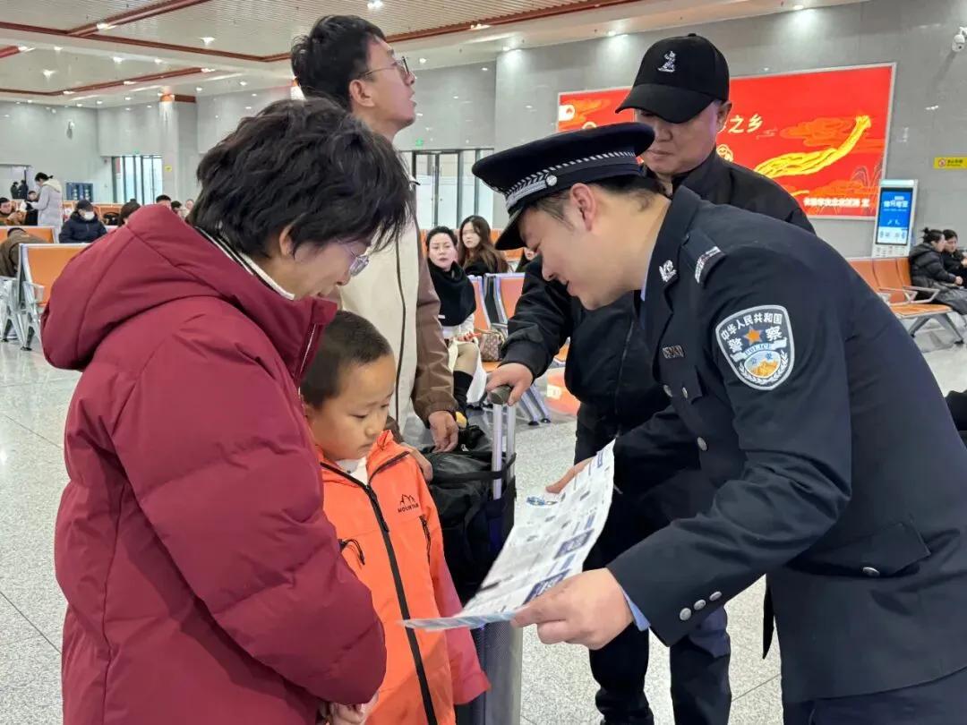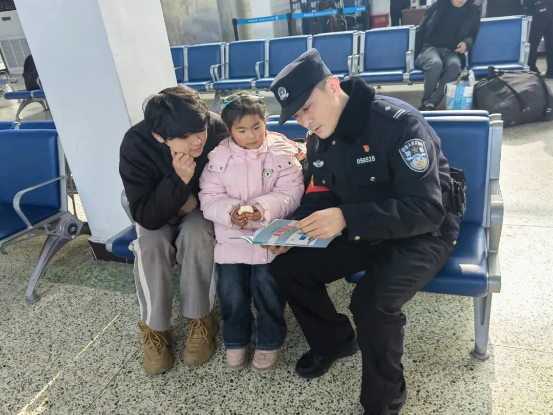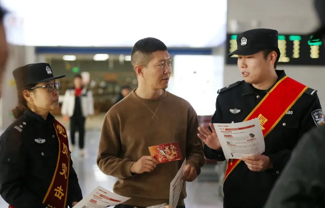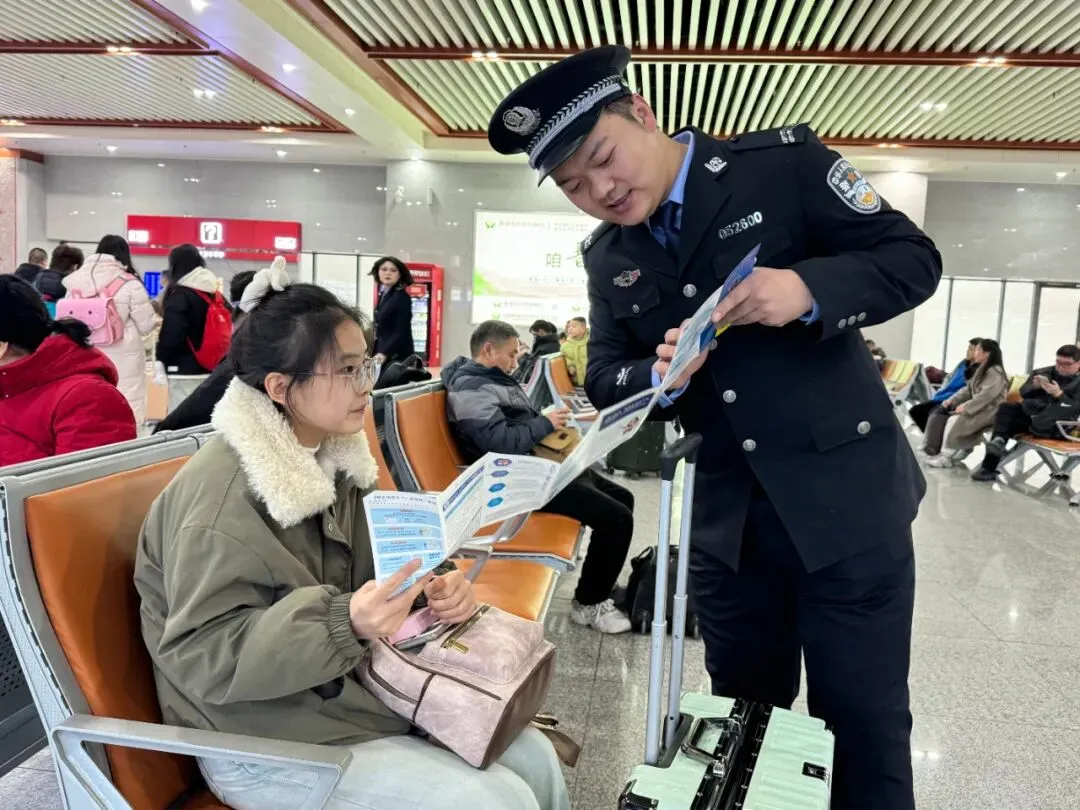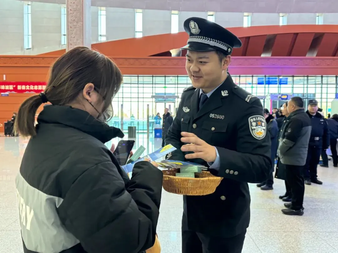 故事:候车大厅里,晋城东站派出所民警通过现场讲解、有奖问答、发放宣传资料等方式,向旅客普及铁路实名制乘车、禁止携带违禁品、防范电信网络诈骗等安全知识,有效提升了群众安全意识和出行体验,营造了温暖、有序、平安的春运氛围。