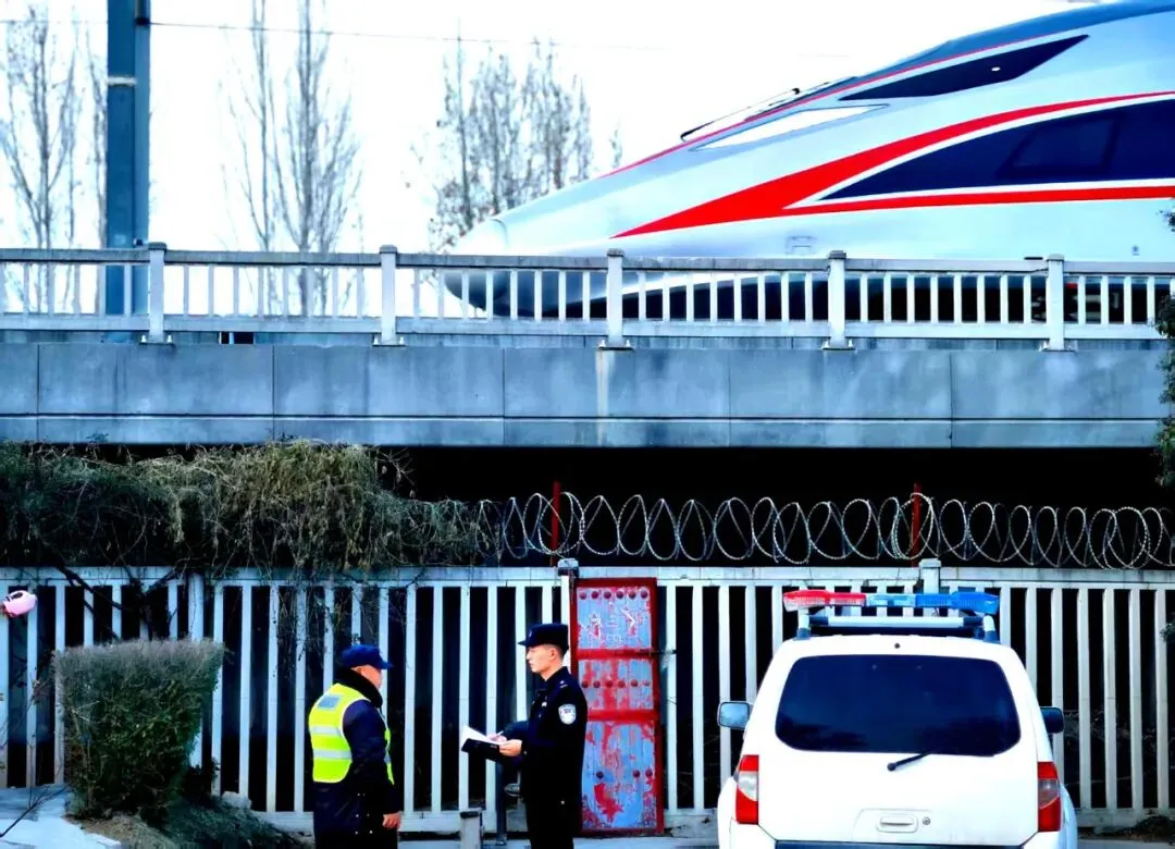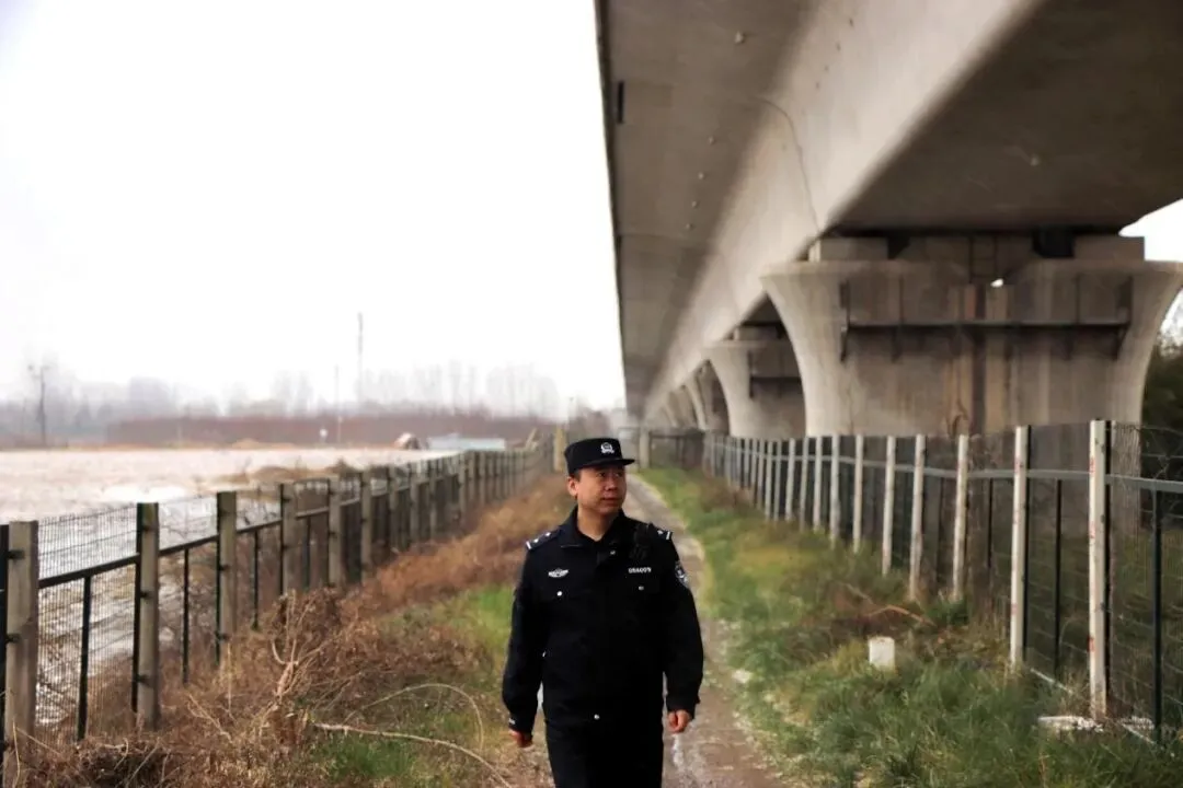 故事:春运期间,民权北站派出所民警坚守岗位,对高铁沿线开展巡逻防控,及时排查风险隐患,全力守护铁路运输安全。