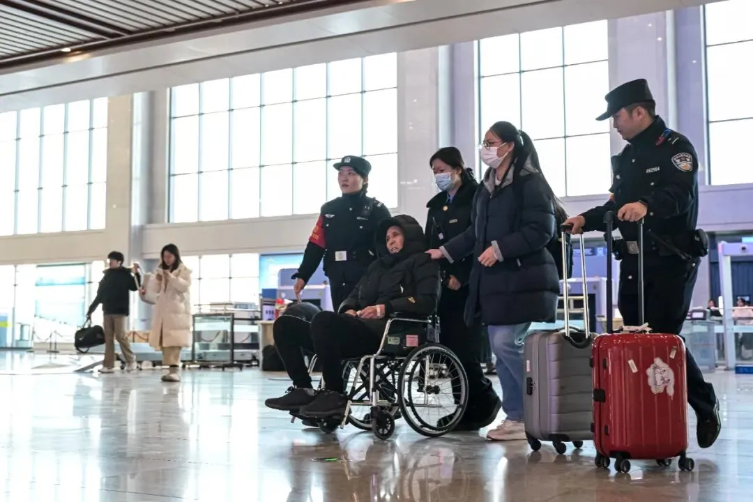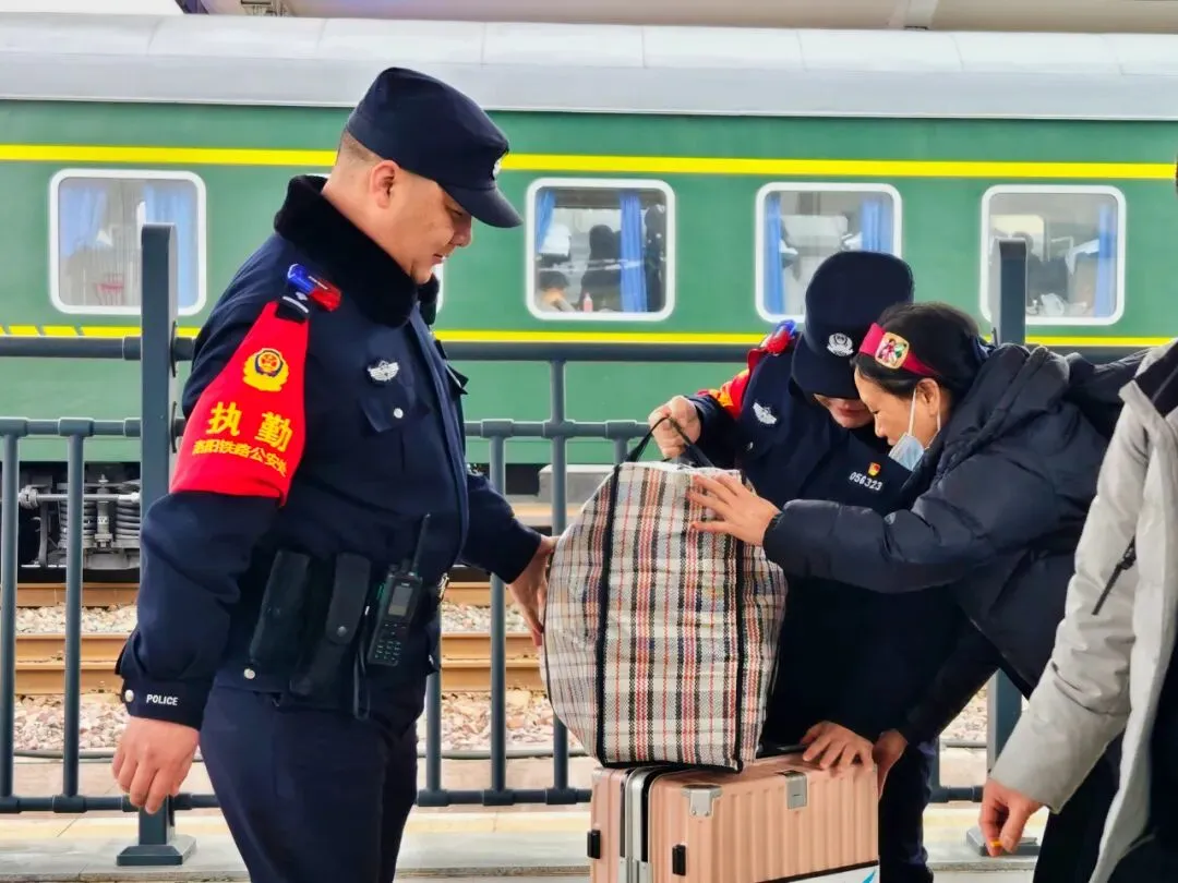 故事:旅客拖着沉重的行李艰难前行,宝丰站派出所民警主动上前“搭把手”,提稳那份沉甸甸的归乡期盼,一托一扶之间,是藏蓝守护最生动的注脚,也是春运归途最温暖的底色。