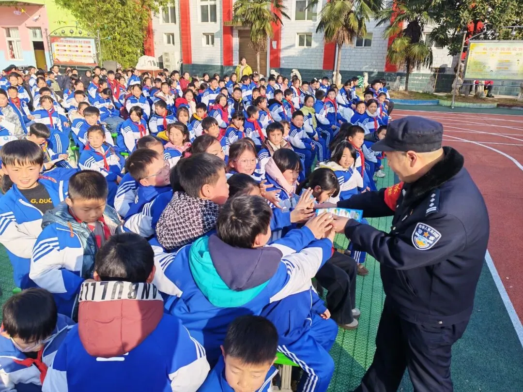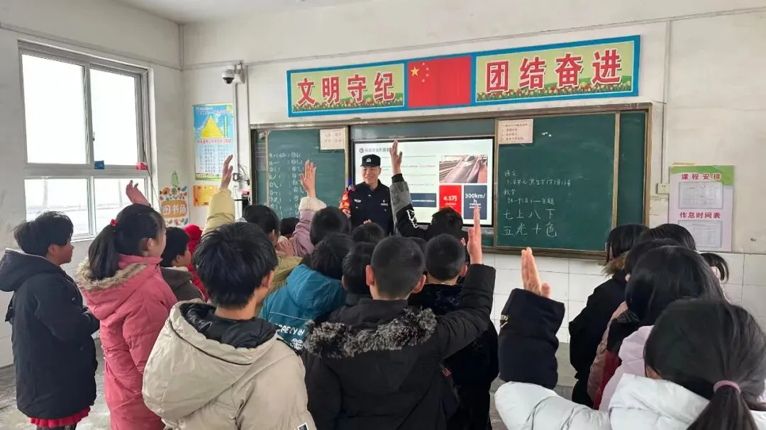 故事:内乡站派出所民警为同学们普及出行安全知识,让同学们牢记铁路安全规范,守好自身平安,共筑校园安全防护网。