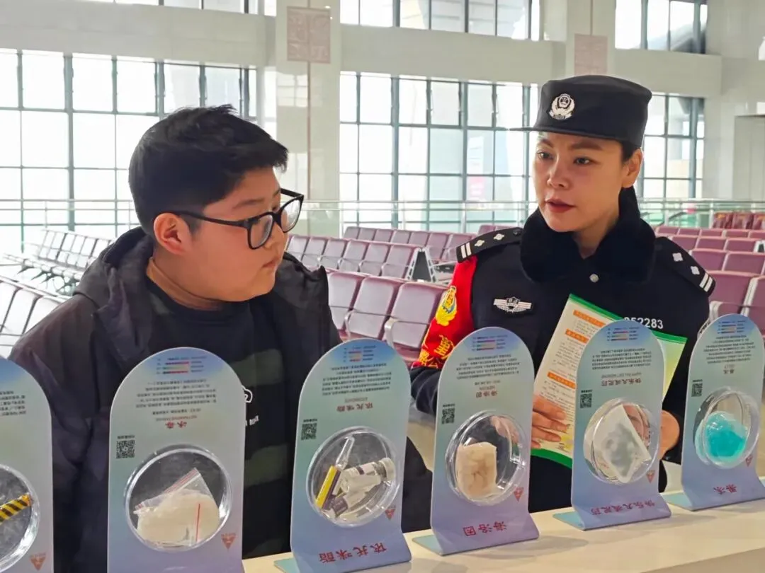 故事:禹州站派出所民警在候车大厅开设“禁毒小课堂”,以互动讲解和标本展示的形式,向青少年传递禁毒知识。民警用通俗易懂的语言剖析毒品对个人、家庭和社会的严重危害,引导青少年树立“珍爱生命、远离毒品”的观念,为青春成长保驾护航。