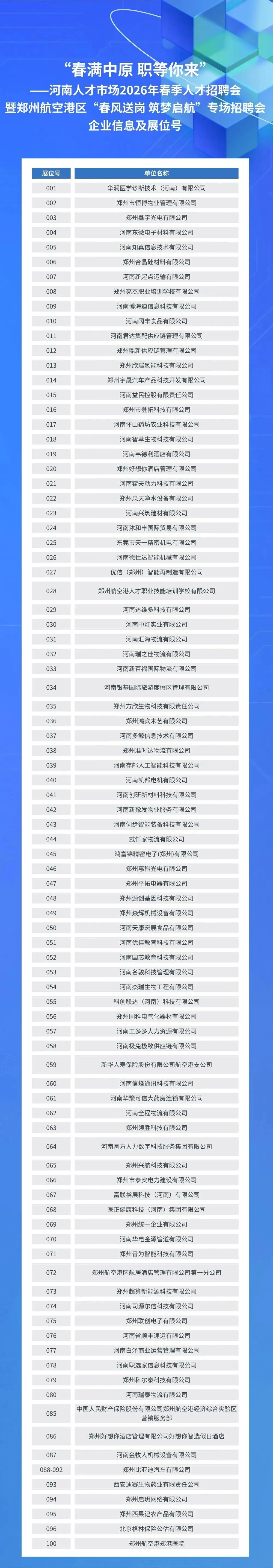 本次春季招聘活动,邀请有富士康、比亚迪、郑州合晶硅、东微电子、源创基因、极兔速递等百余家企业到现场招聘,提供就业岗位6000多个,涵盖了大部份专业类别,包括制造业、服务业、生物医药、新能源、物流、互联网、人工智能、农牧、金融、教育培训等多个行业、产业。
