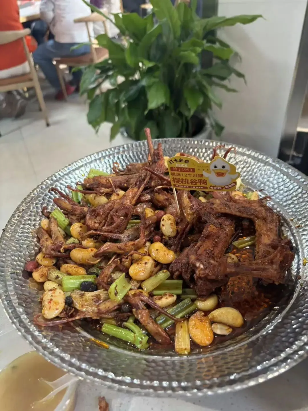 招牌鸭宝:味道香辣,偏干锅的做法。里面的白扁豆,我真的好爱。吸收了鸭宝的香味,香而不腻,绵绵软软。