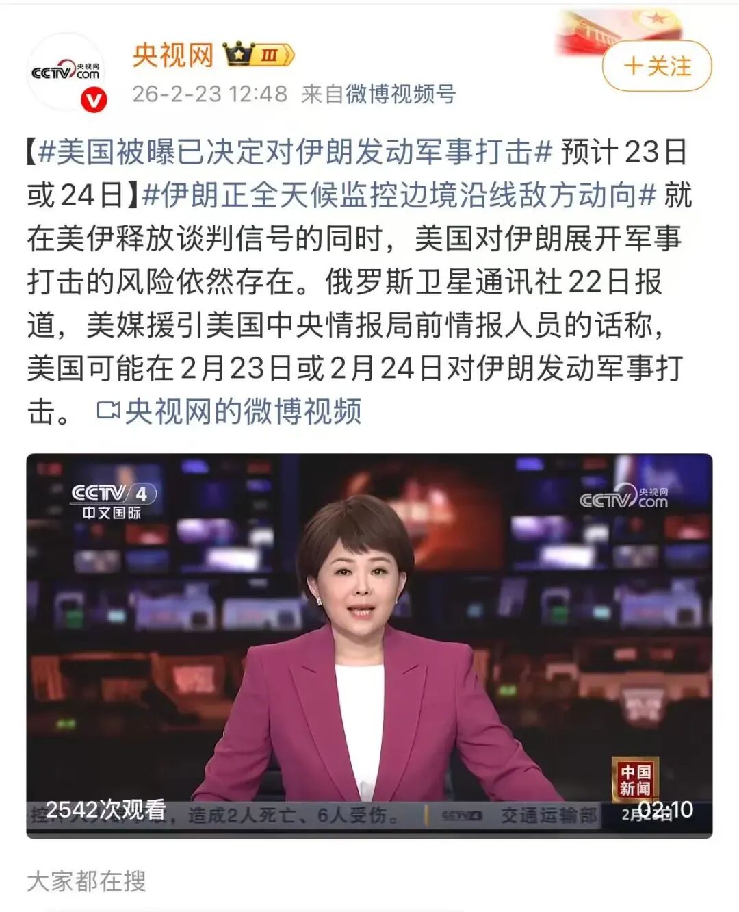 ●美国被曝已决定对伊朗发动军事打击,预计23日或24日。