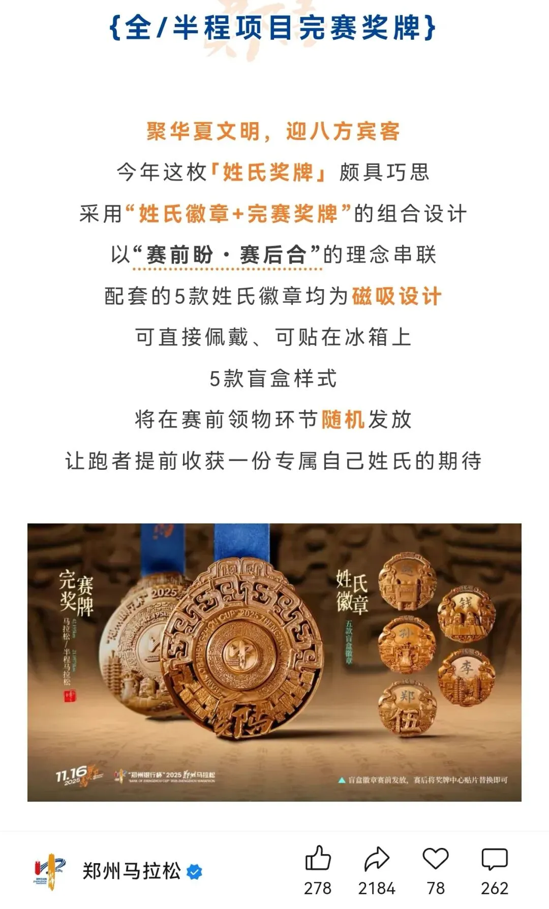 2025年郑州马拉松奖牌