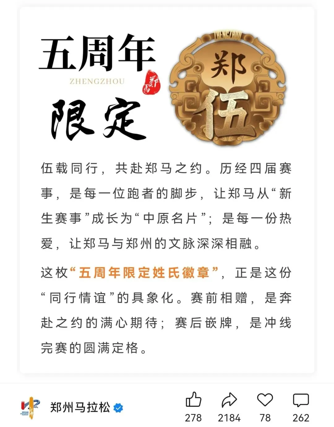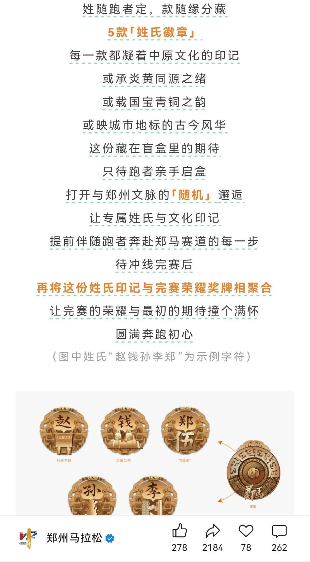 2019年郑州马拉松奖牌