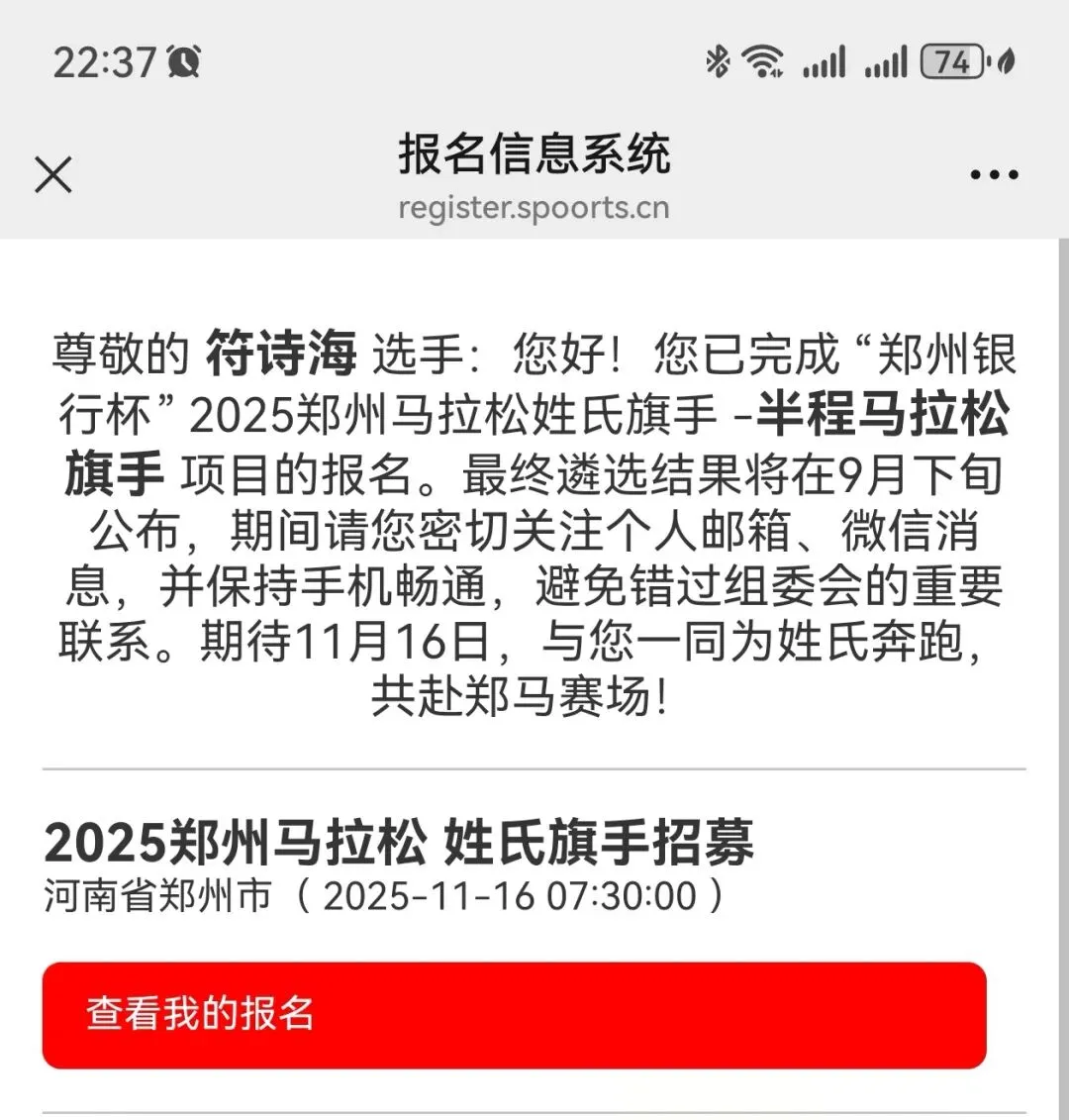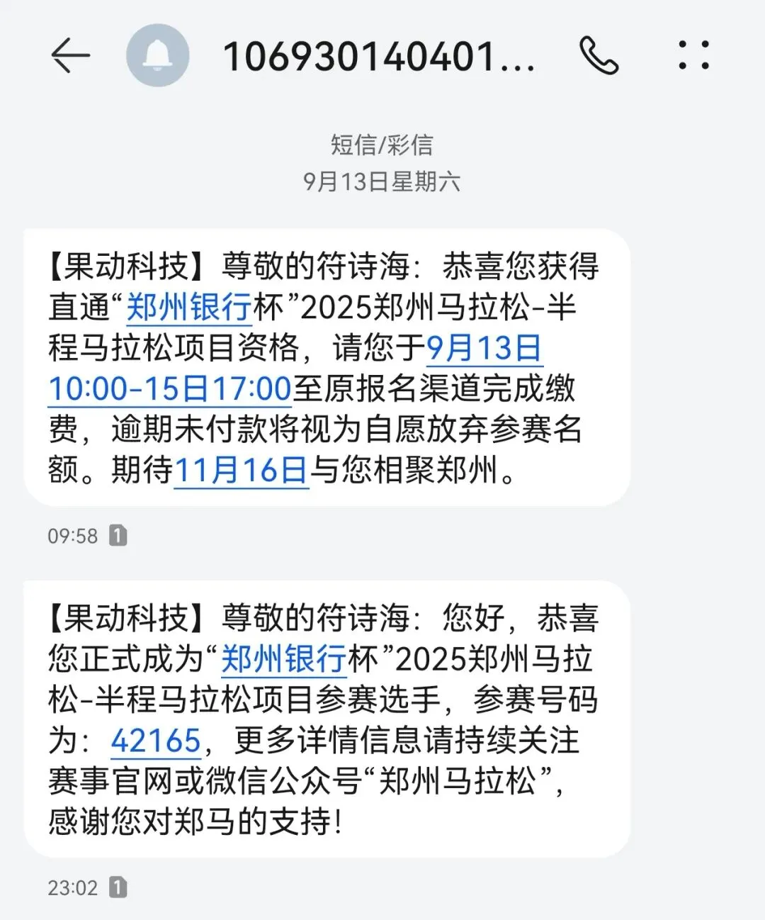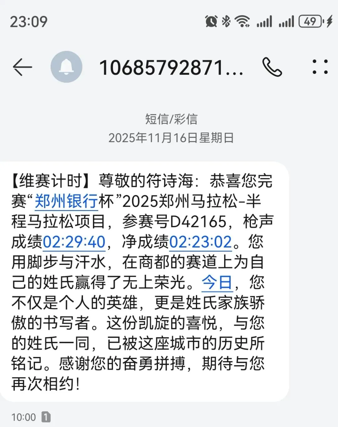 完赛短信