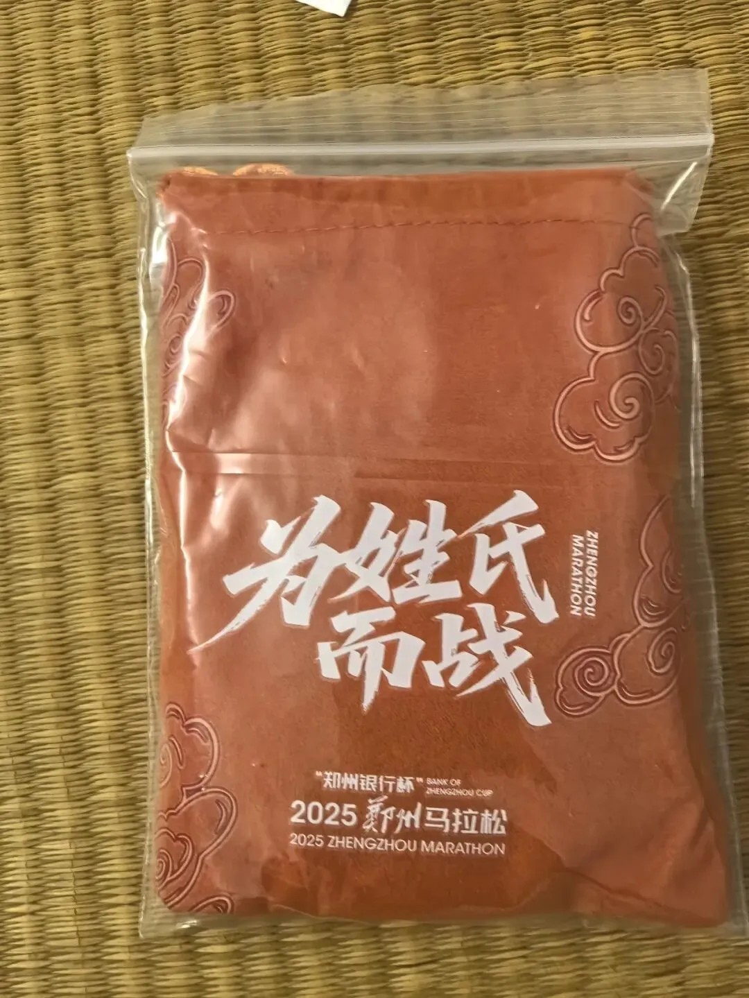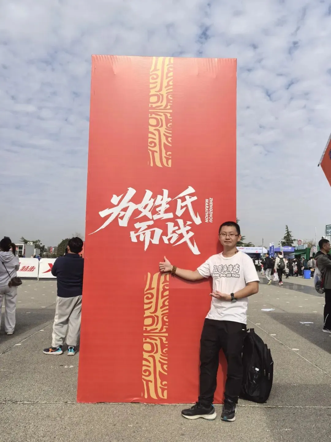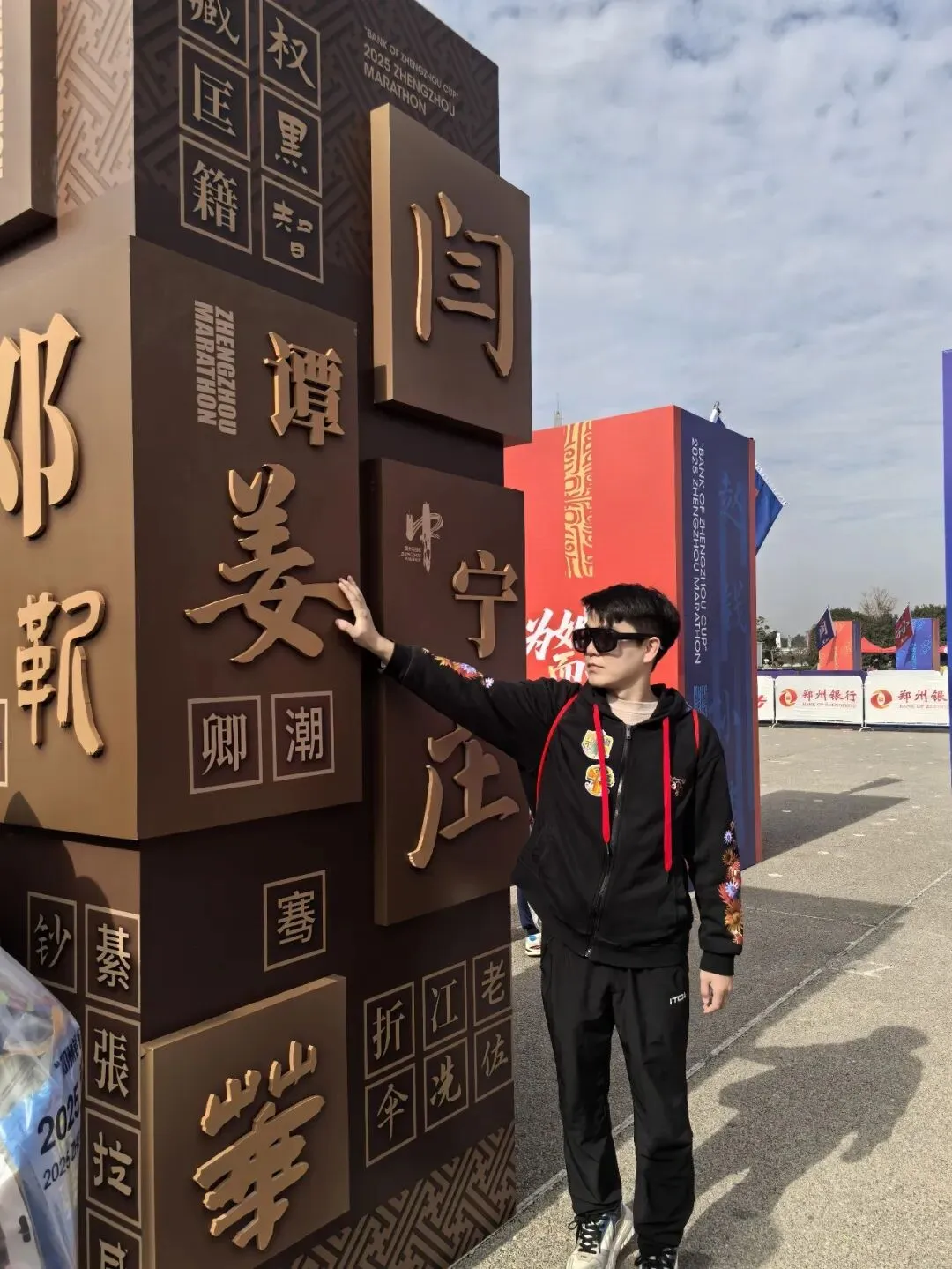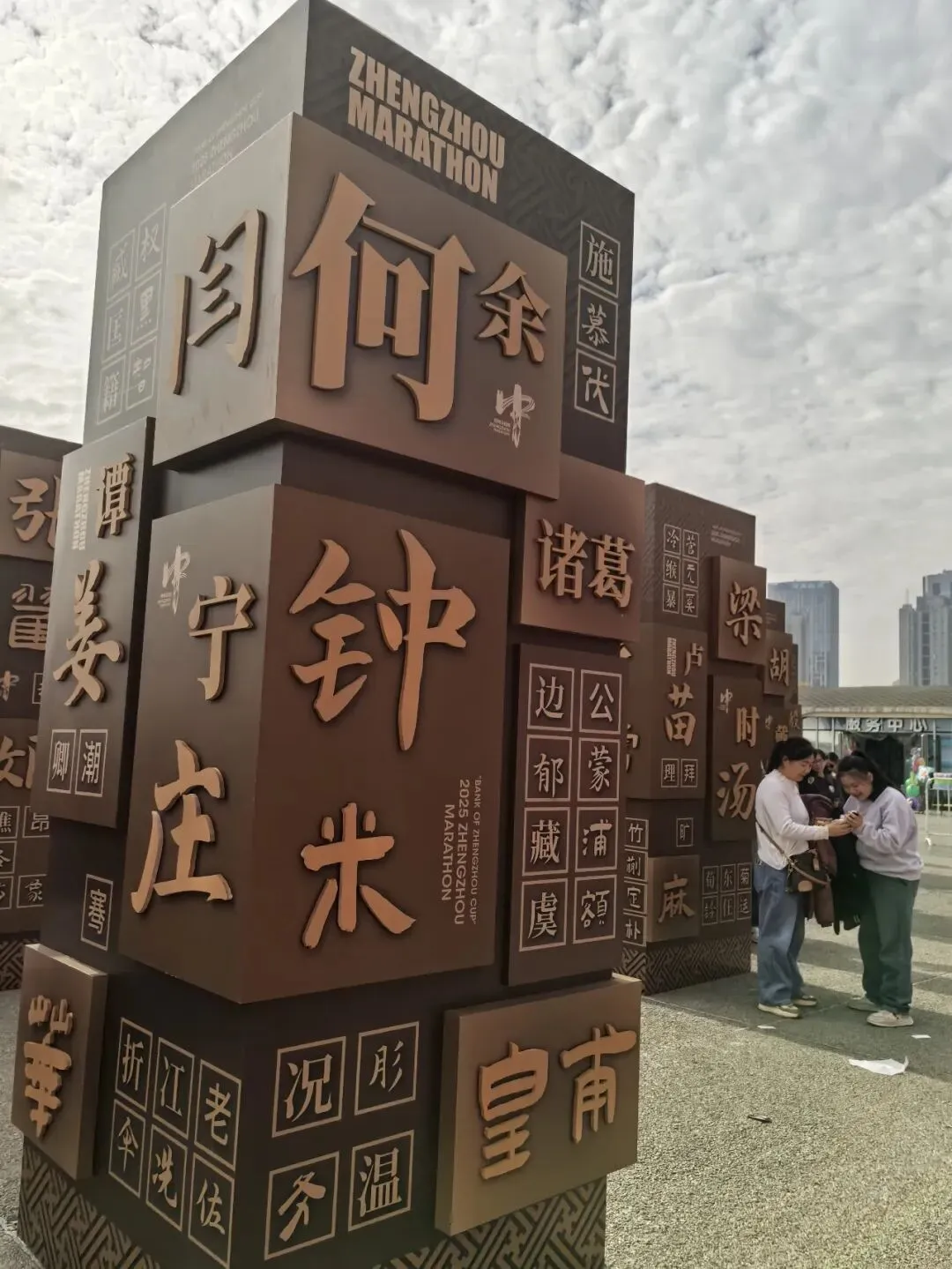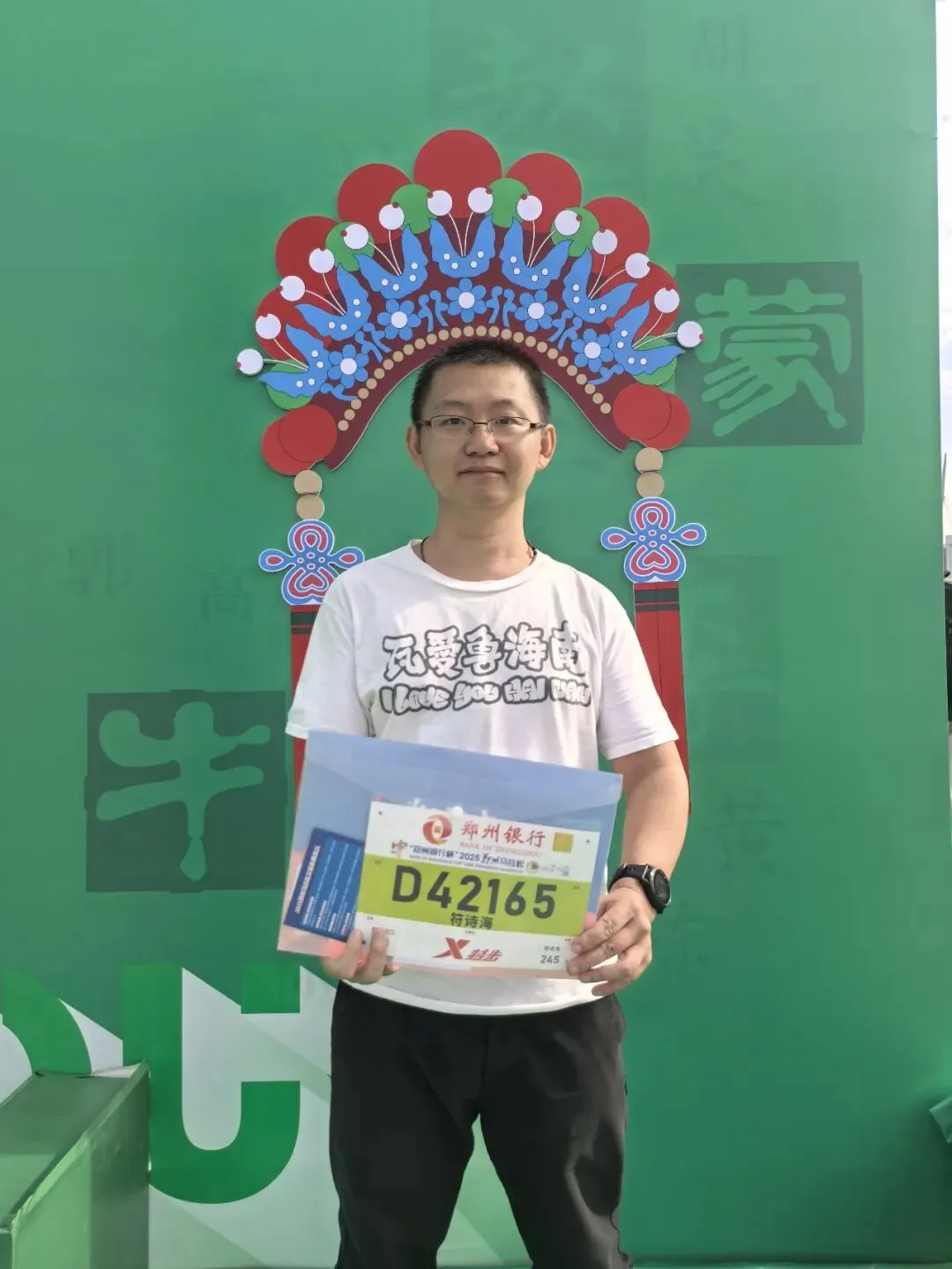 到达领物资地方(如意湖文化广场),领取小票,进去领物资,靠外测的方向有个别姓氏旗子,可惜【符】姓没上榜。在姓氏区域,从姓氏盒子里随机抓取一个【符】,打开看是五周年纪念图案。领完参赛物资,到外面周边溜达,看到姓氏旗手物资领取处,可惜没中签,不晓得以后有概率中么?姓氏柱这个玩法不错,大伙找自己的姓氏合影。郑马定妆照排长龙,果断放弃,后面看到跑者的成品照片,还是有些后悔,没坚持排队。