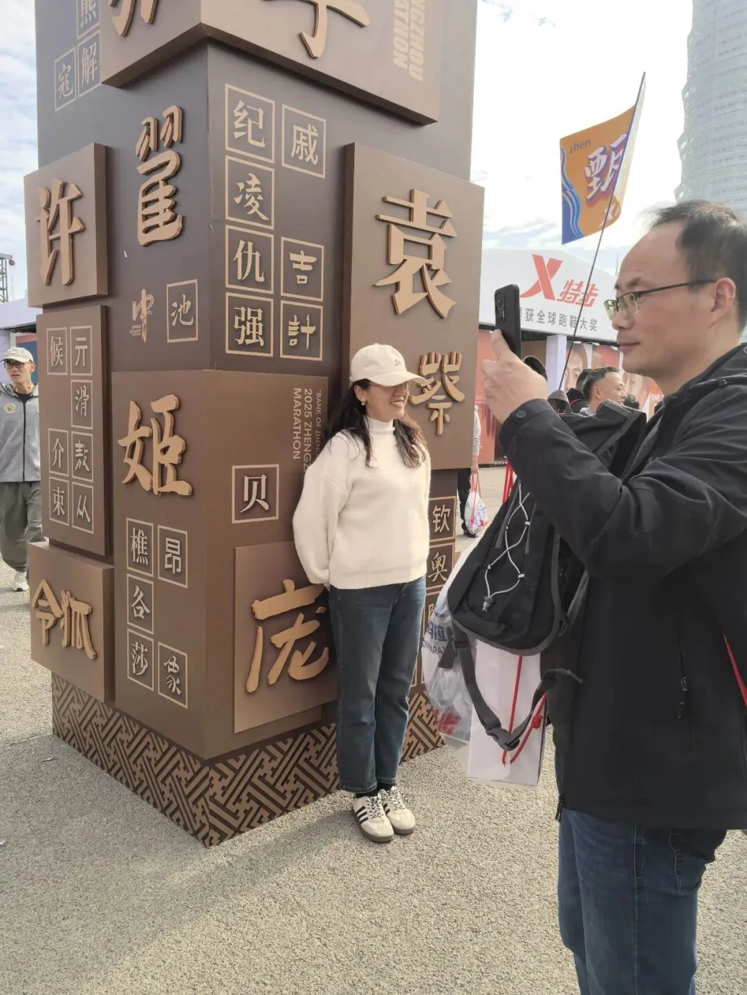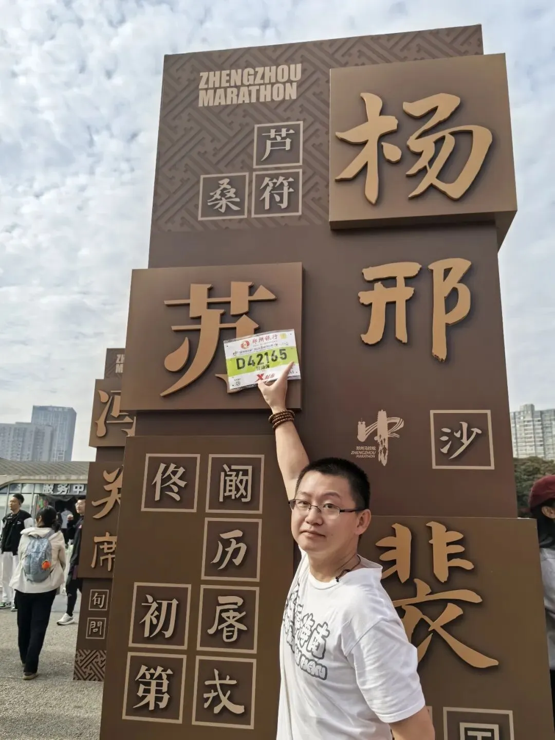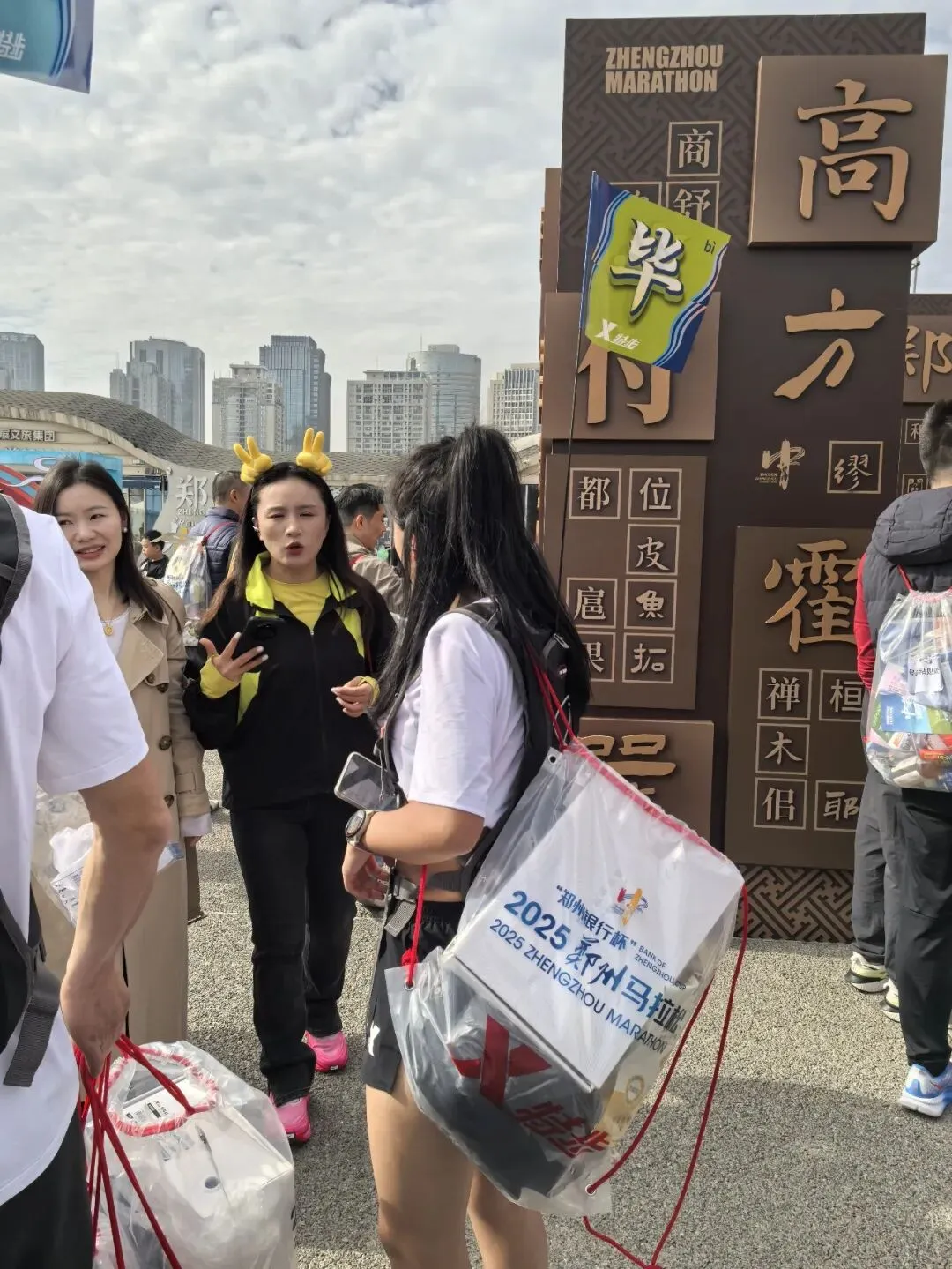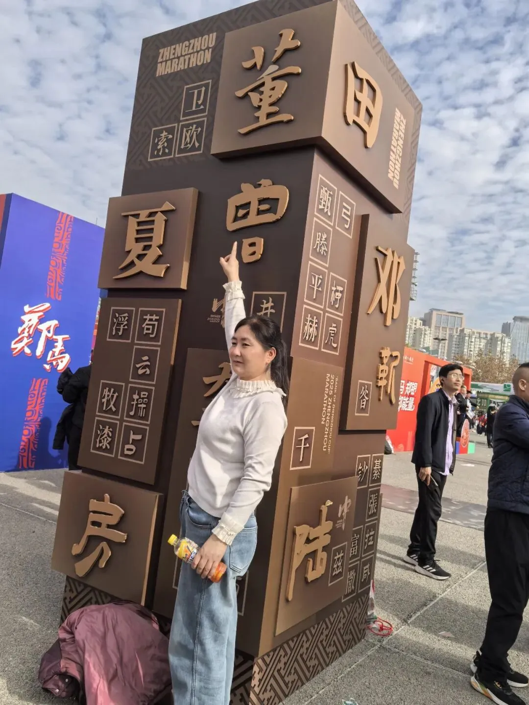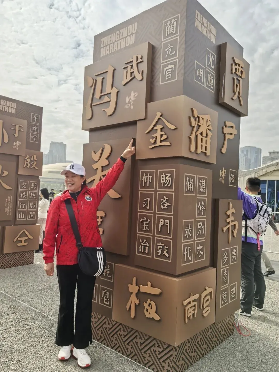 到达领物资地方(如意湖文化广场),领取小票,进去领物资,靠外测的方向有个别姓氏旗子,可惜【符】姓没上榜。在姓氏区域,从姓氏盒子里随机抓取一个【符】,打开看是五周年纪念图案。领完参赛物资,到外面周边溜达,看到姓氏旗手物资领取处,可惜没中签,不晓得以后有概率中么?姓氏柱这个玩法不错,大伙找自己的姓氏合影。郑马定妆照排长龙,果断放弃,后面看到跑者的成品照片,还是有些后悔,没坚持排队。