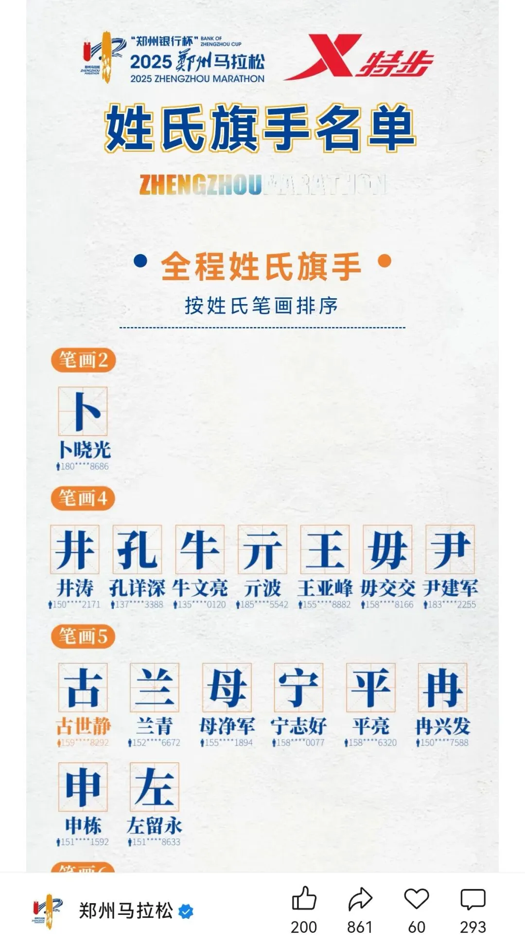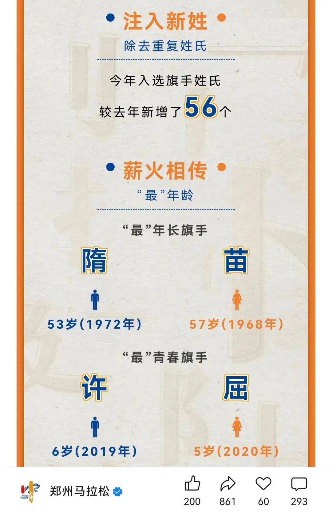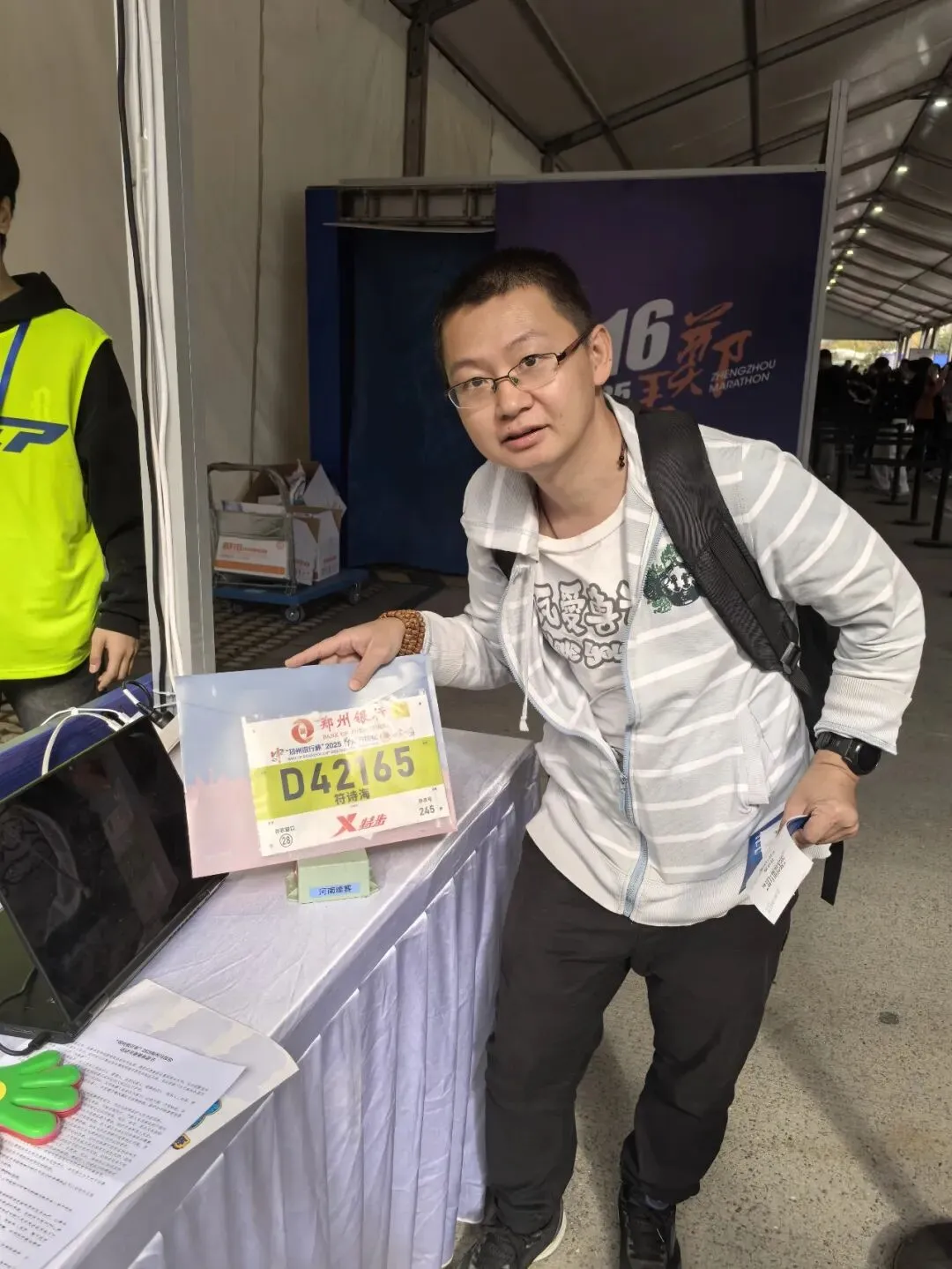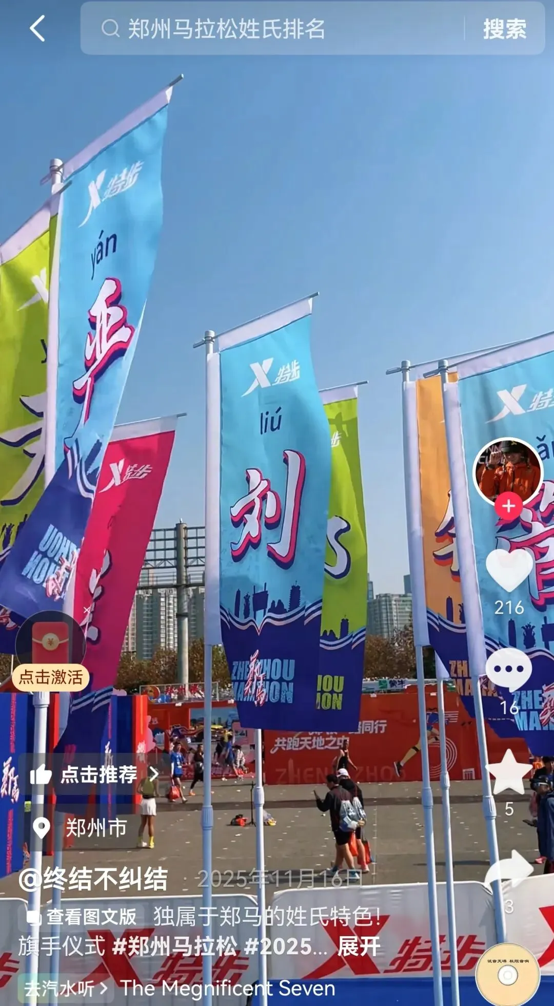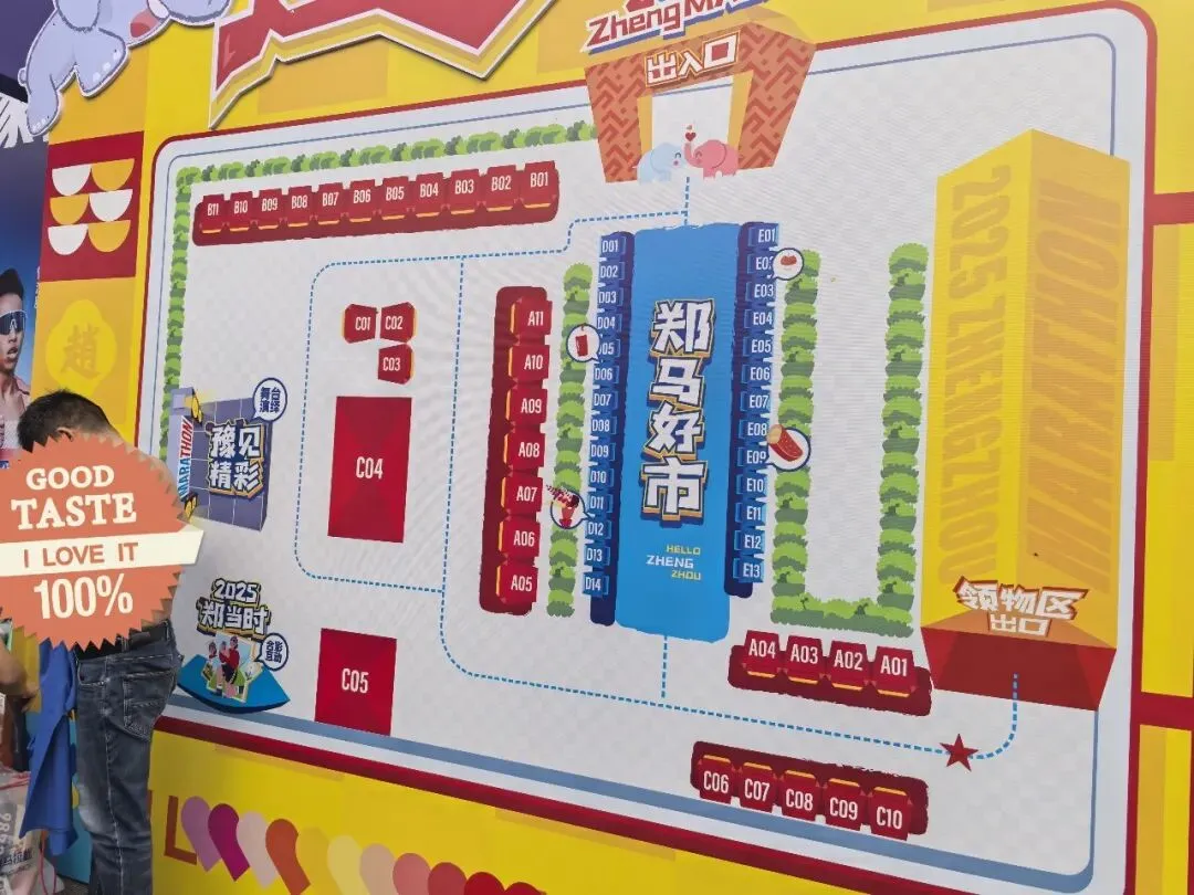 到达领物资地方(如意湖文化广场),领取小票,进去领物资,靠外测的方向有个别姓氏旗子,可惜【符】姓没上榜。在姓氏区域,从姓氏盒子里随机抓取一个【符】,打开看是五周年纪念图案。领完参赛物资,到外面周边溜达,看到姓氏旗手物资领取处,可惜没中签,不晓得以后有概率中么?姓氏柱这个玩法不错,大伙找自己的姓氏合影。郑马定妆照排长龙,果断放弃,后面看到跑者的成品照片,还是有些后悔,没坚持排队。