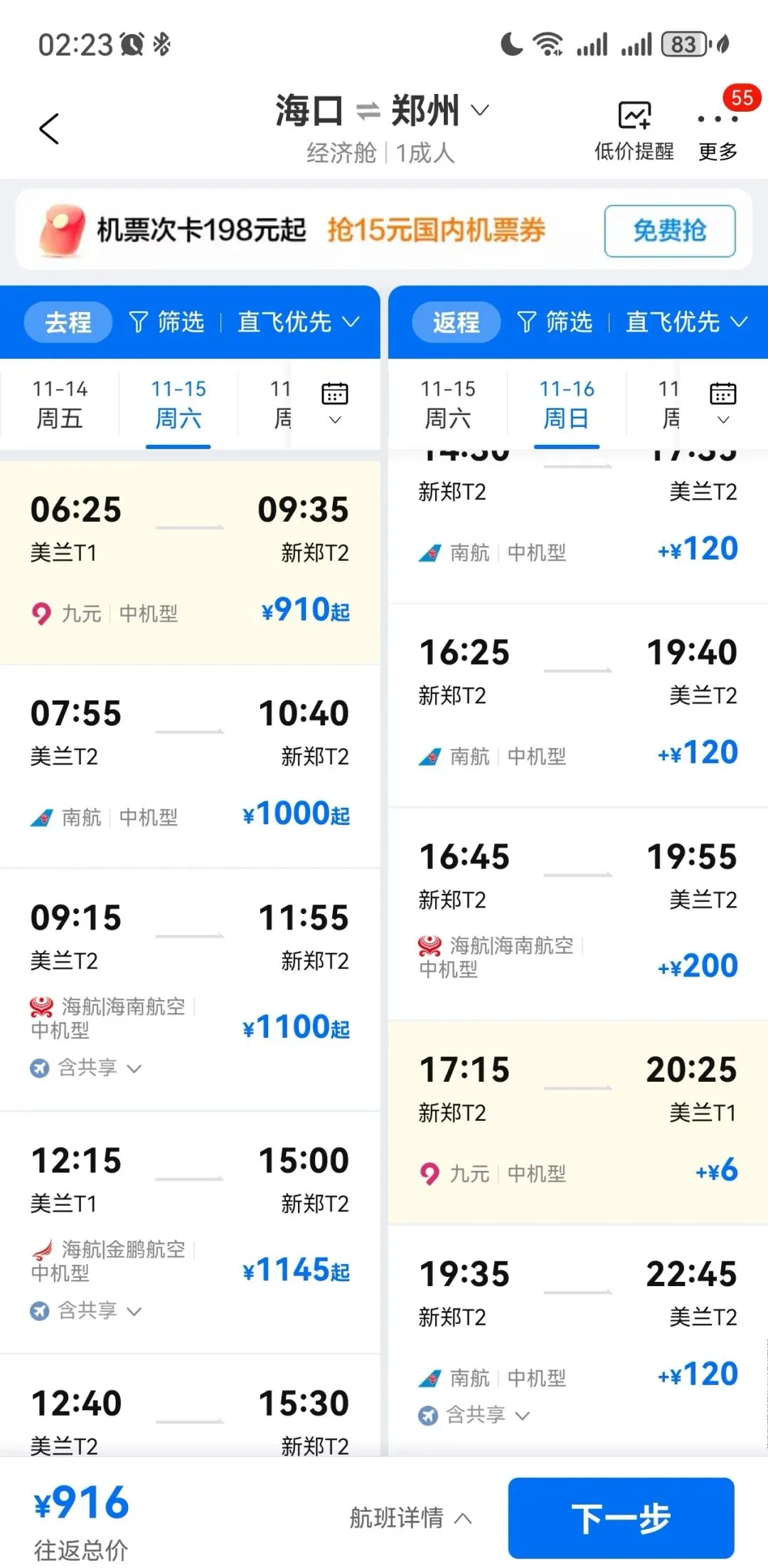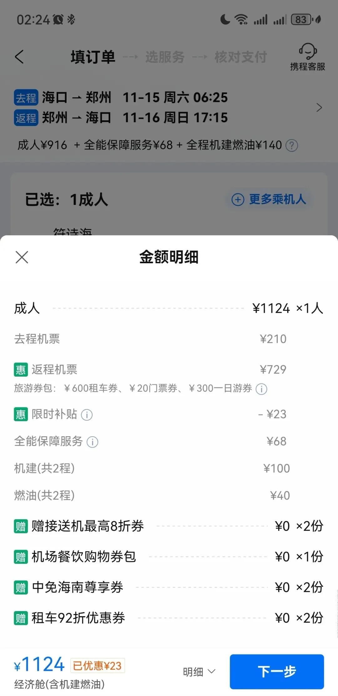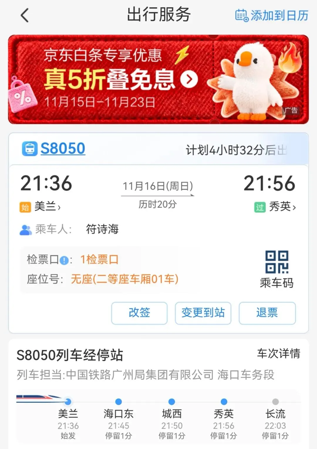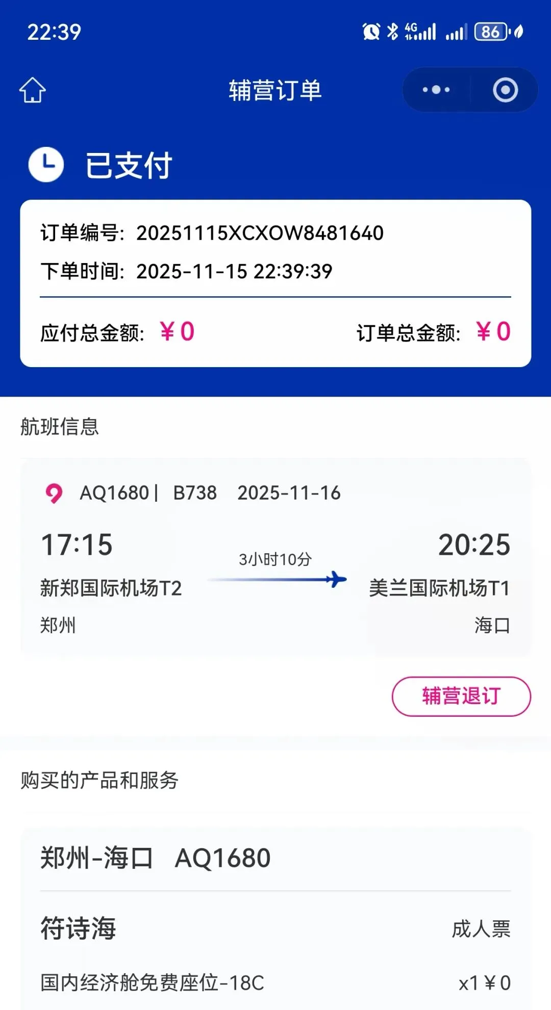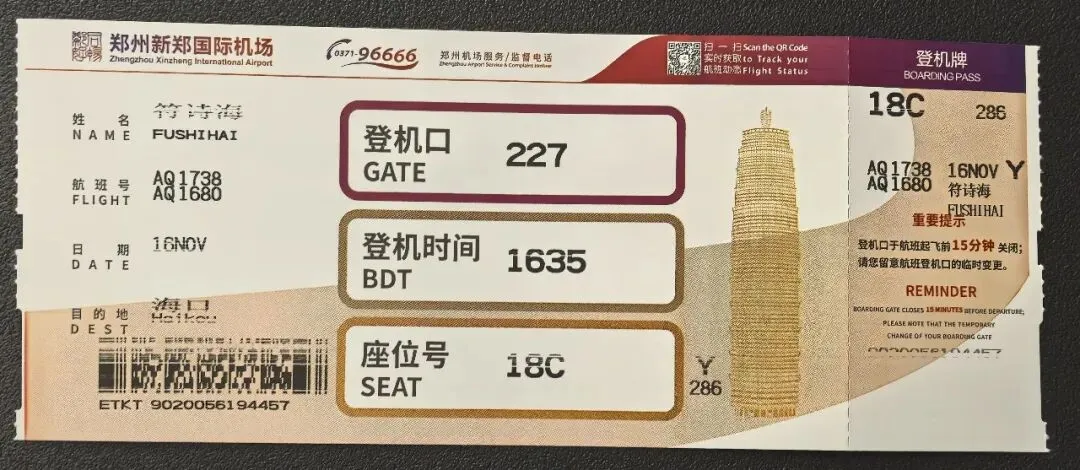 2025年10月28日,购买海口往返郑州机票。机票916元,总体费用1124元,实付1119元。2025年11月11日,双十一网购节,意思一下,买手串绳和二手硬盘(2T)。二手机械硬盘买贵了,当时硬盘价格起起伏伏,收货后还看到降价,对于刚需的人来说,吃点小亏也接受。用图吧工具箱检测,状态良好。当时对郑州马拉松有些徘徊不定,郑州跑两次,和我早前一座城市跑一次的想法有出入。今年出省3次,第一次湖北恩施土家族,跑龙凤马拉松;第二次西藏拉萨藏族,跑拉萨半程马拉松;第三次计划贵州雷公山侗族,跑雷公山马拉松,就凑够少数民族之旅,但是遇到雷山苗年(一年一次)加鼓藏节(十三年一次),雷公山马拉松是不办了,可惜。把这名额拿来二刷郑州马拉松,这次是郑州马拉松5周年,也算值得。顺便看看五十六个民族的服饰视频。2025年11月14日,抽空选飞机座位,搬砖完毕后,到城西高铁站,乘坐城西(18:46)到美兰(19:00),再次体验机场过夜。城西站看到位cosplay小姐姐,跟着小姐姐不迷路。到美兰机场,找T2休息室,先在M记坐坐,等休息室开放,再进来。21:00开放后找个位置休息。有2种躺椅,一种是平躺的,一种是稍微翘起来。有一对外国夫妻,过来躺椅这边,以为是休息,结果是轮流到去洗澡,如果有旅游搭子,这种方式也不错。