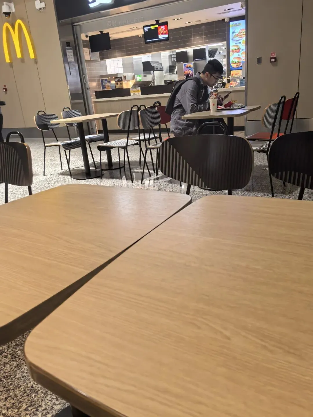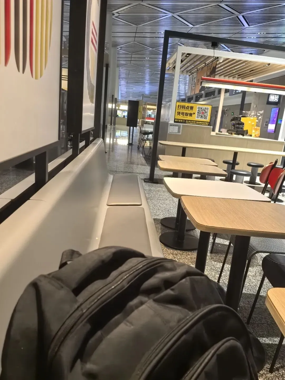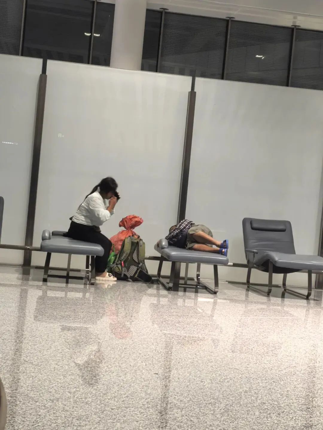 2025年11月15日凌晨03:47醒,在三楼出发大厅4号门外面等摆渡车,04:00没看到摆渡车,问工作人员,说去一楼到达大厅等,04:07坐摆渡车到T1到达大厅,坐电梯上二楼出发大厅,看到旅客在椅子上休息,这方式也不错。04:18找到人工柜台值机。04:30领取登机牌,04:36从A登机口进去,04:40安检。进来登机口,看到有个大沙发,在这里休息也挺好。先找个空闲位置充电,05:45登机,看航班信息,先到郑州,再飞赤峰。06:25起飞。