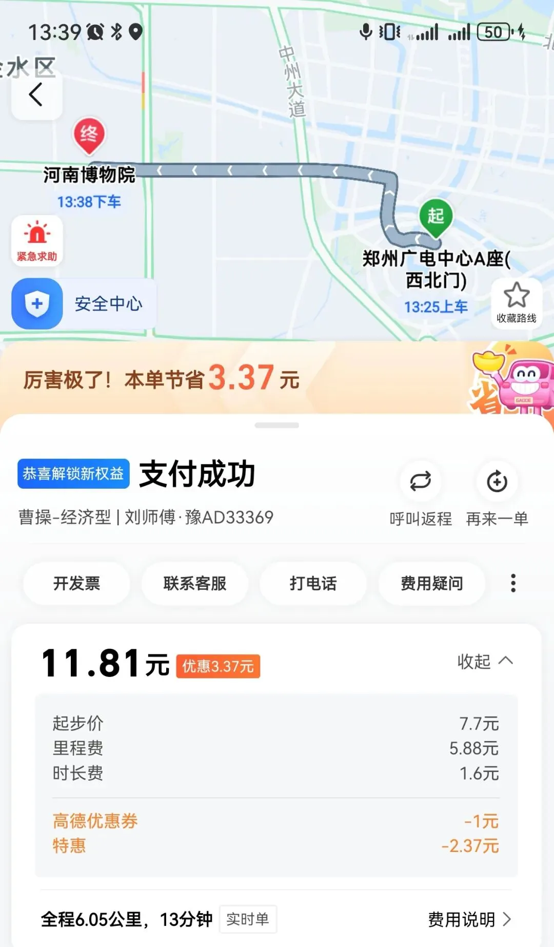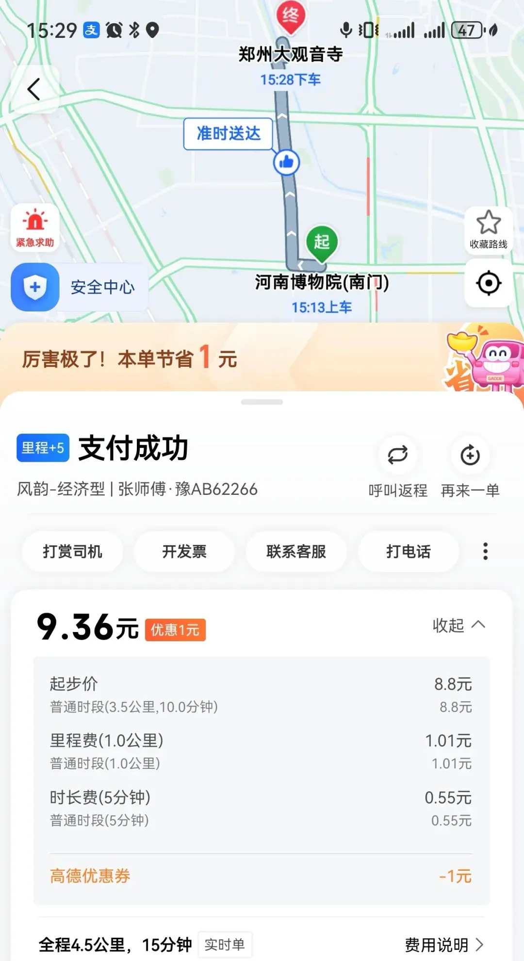 网约车:领物资地点-河南博物院