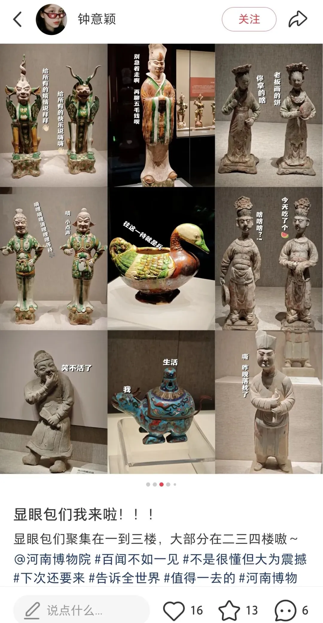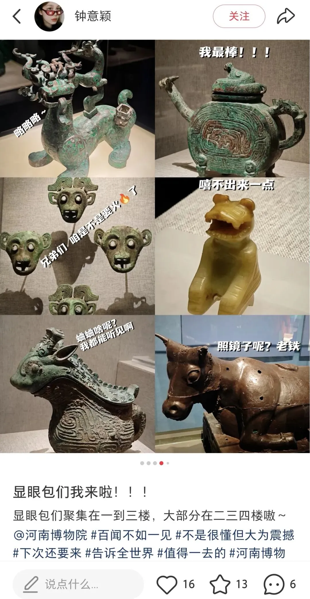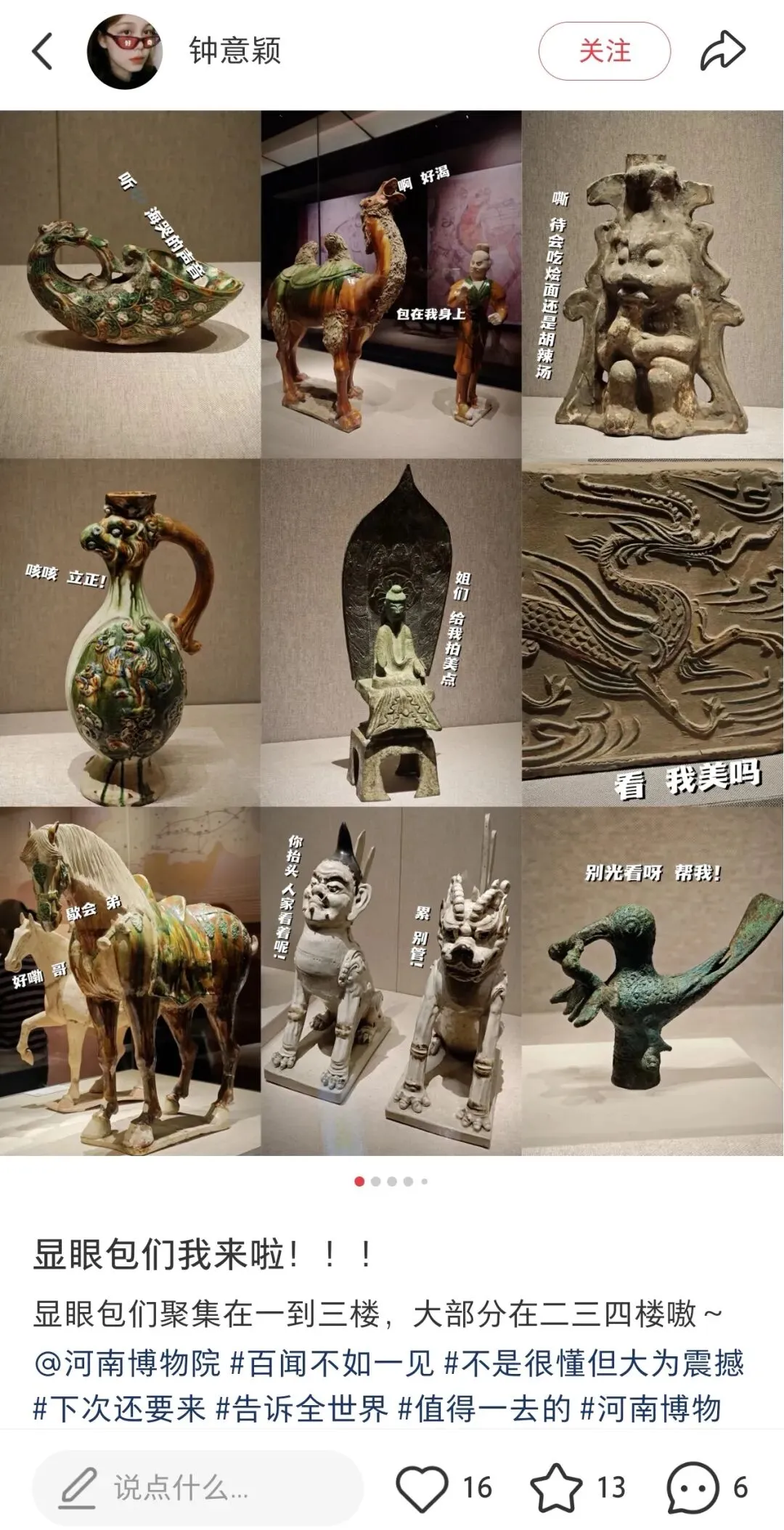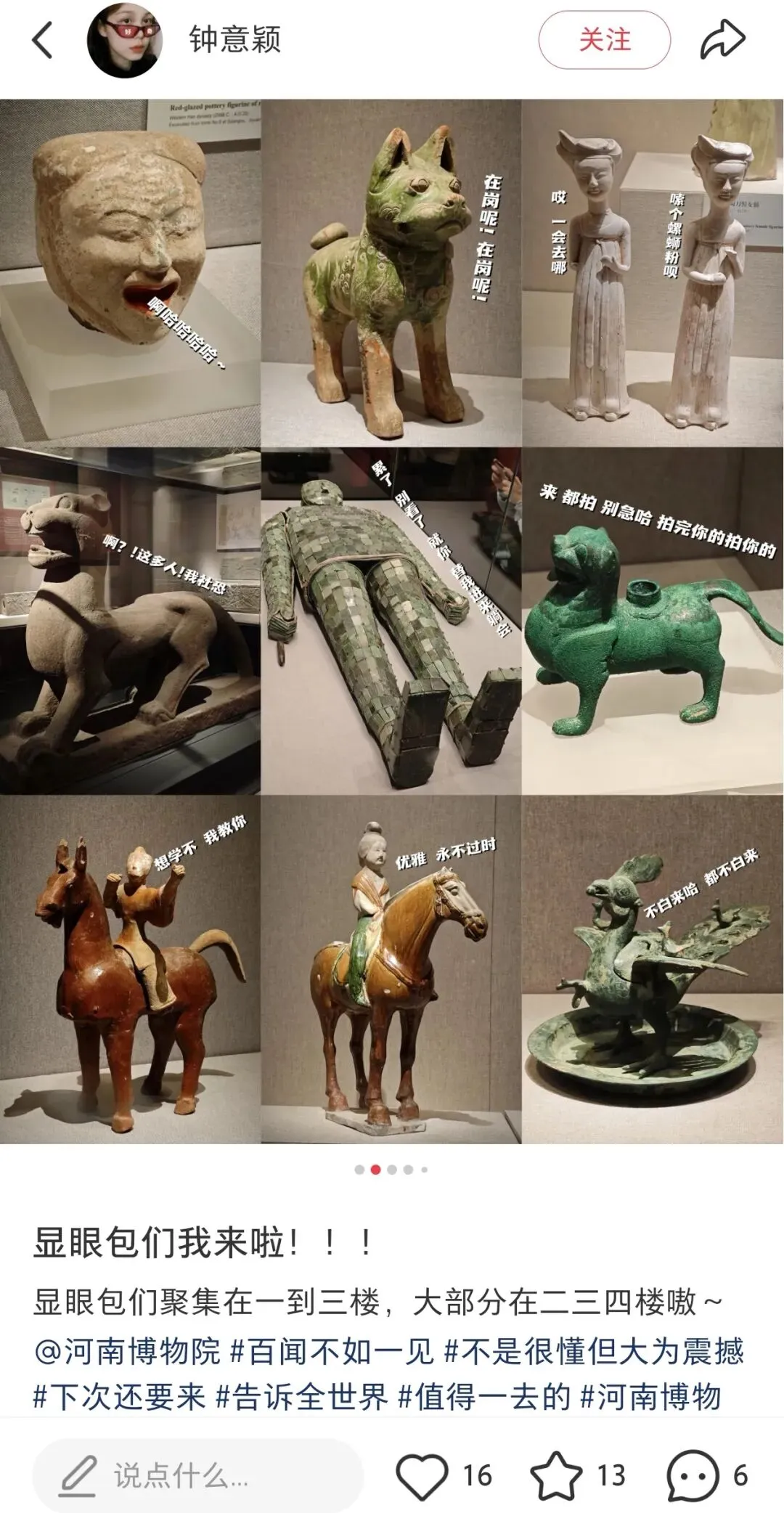 逛完领物资现场,13:25网约车(11.81元)出发河南博物院,13:38到了后,先存包,放进22号柜,继续在2的路上,哈哈。轻装逛博物院,看看各种展品以及网红小狗等展品。