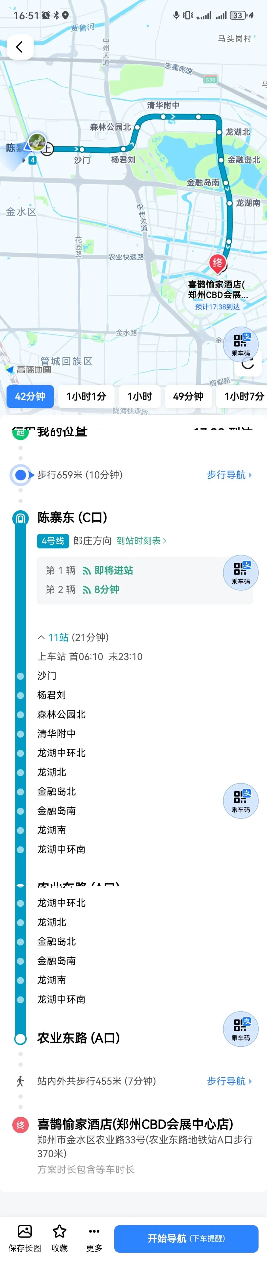 逛完博物院,15:13网约车(9.36元)去大观音寺,15:28地大目的,这游客挺多的,树木打营养液,第一次见,新奇。逛完大观音寺,16:51坐地铁4号线(3元),从陈寨东C到农业东路A回酒店