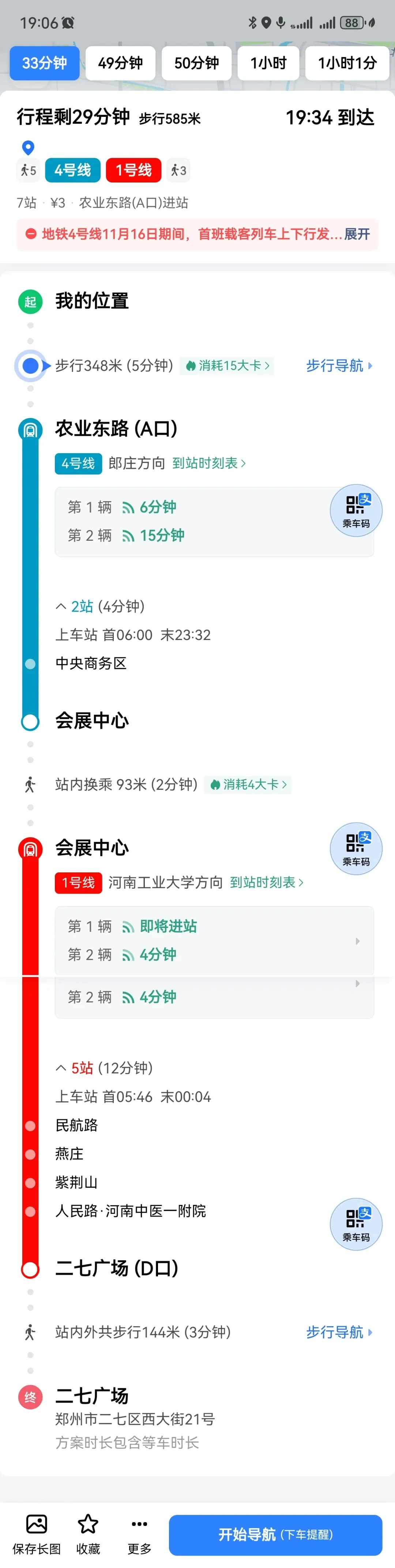 地铁:酒店-二七广场