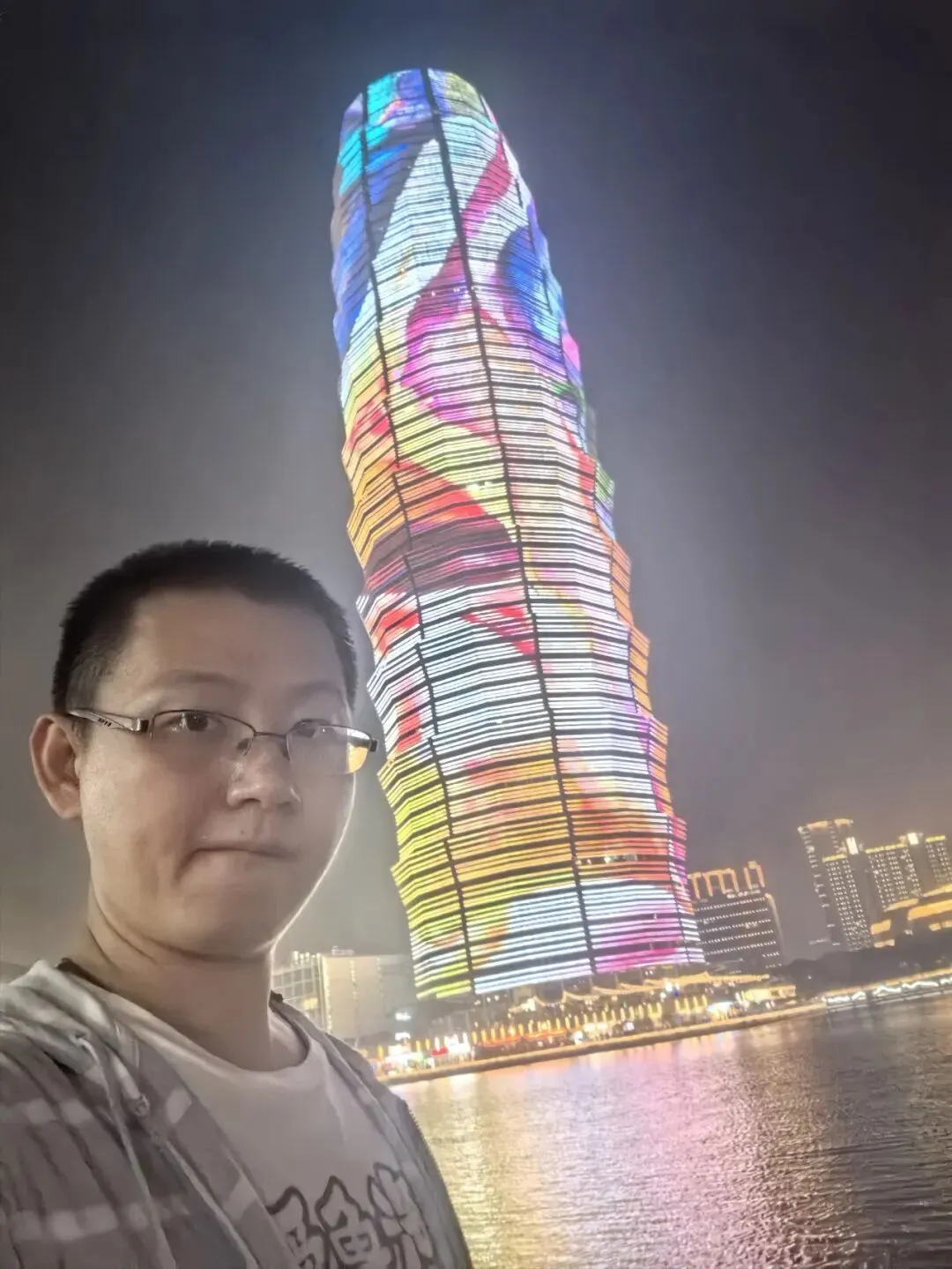 19:00出门,坐地铁(3元)去二七广场拍二七塔,拍照的时候,有个大哥一起聊天,他曾经在海口海甸岛住了10年等等一些话题,还推荐我去拍黄金楼,我口头答应,但2024年跑合肥拍过了,就没太多兴趣想拍黄金楼,去觅食找吃的,4个蛋挞4元,一份肉夹馍和鲜肉馄饨19元,实付18.8元。出来看看唱歌活动,坐地铁(3元)去千玺广场(大玉米)拍照,回酒店(2元,实付1.9元),看到有个小冰箱,里面有水和饮料,原来放在这了,哈哈。顺便给飞机选座位。